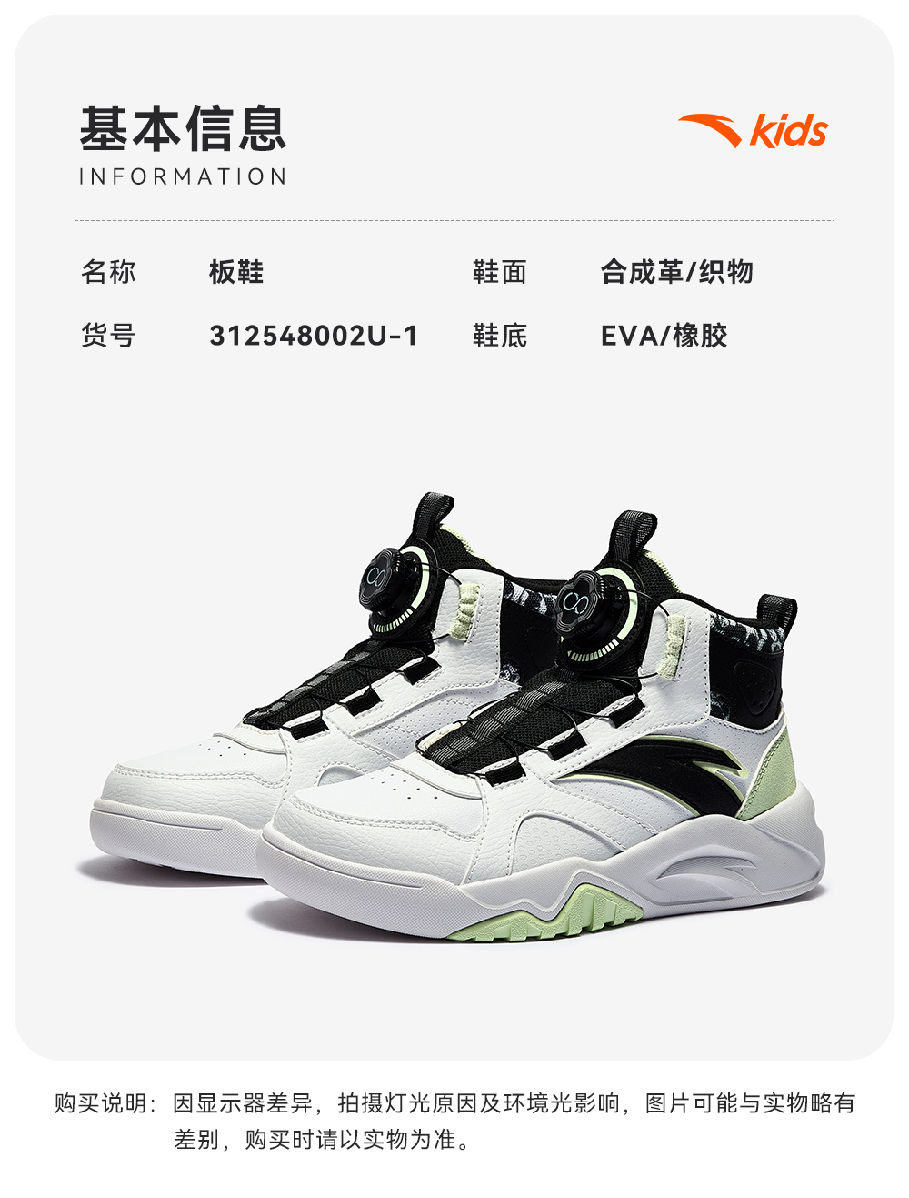 超级安踏男大童高帮板鞋秋冬保暖休闲鞋儿童耐磨运动鞋312548002U