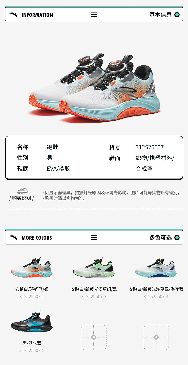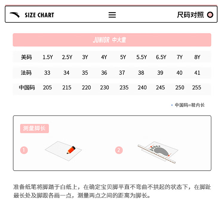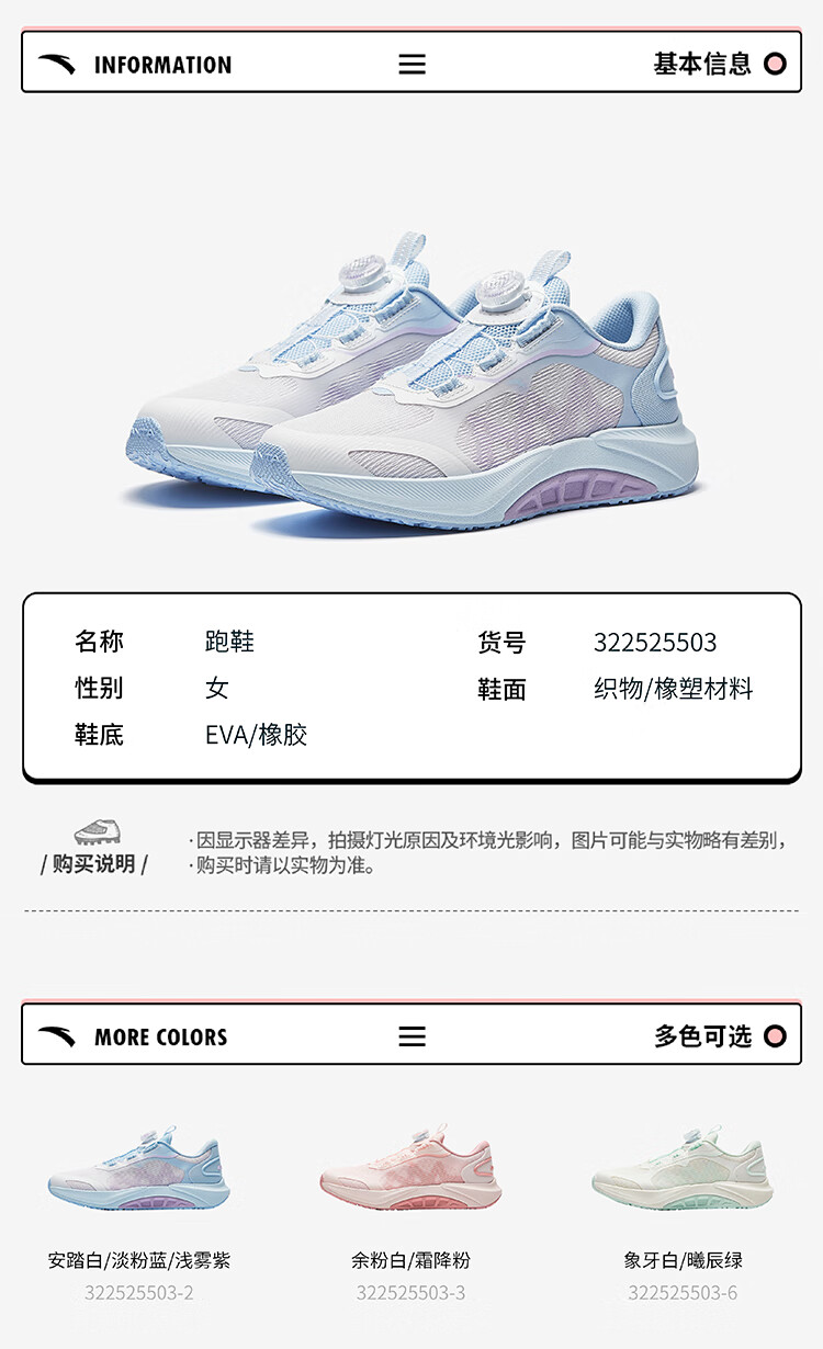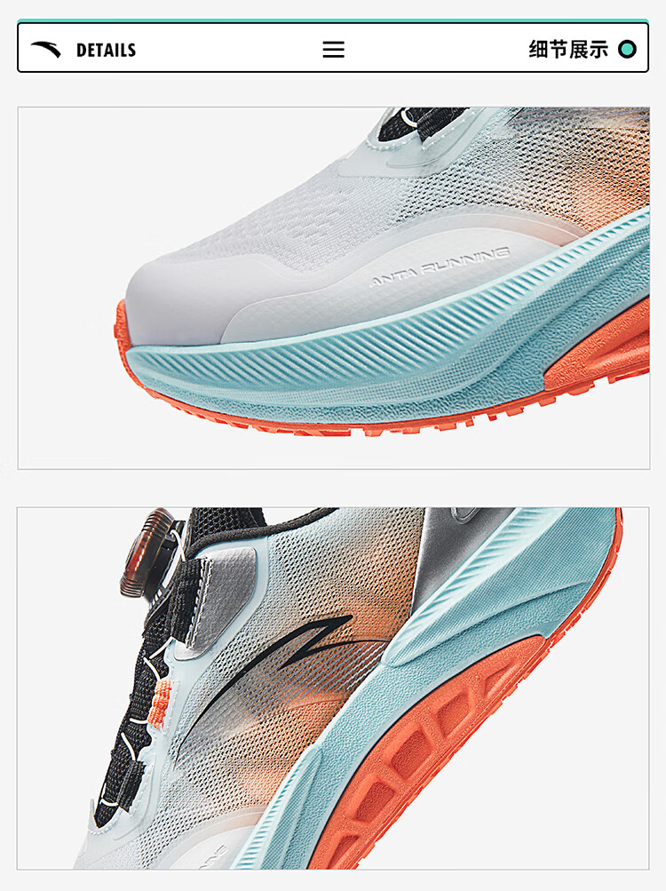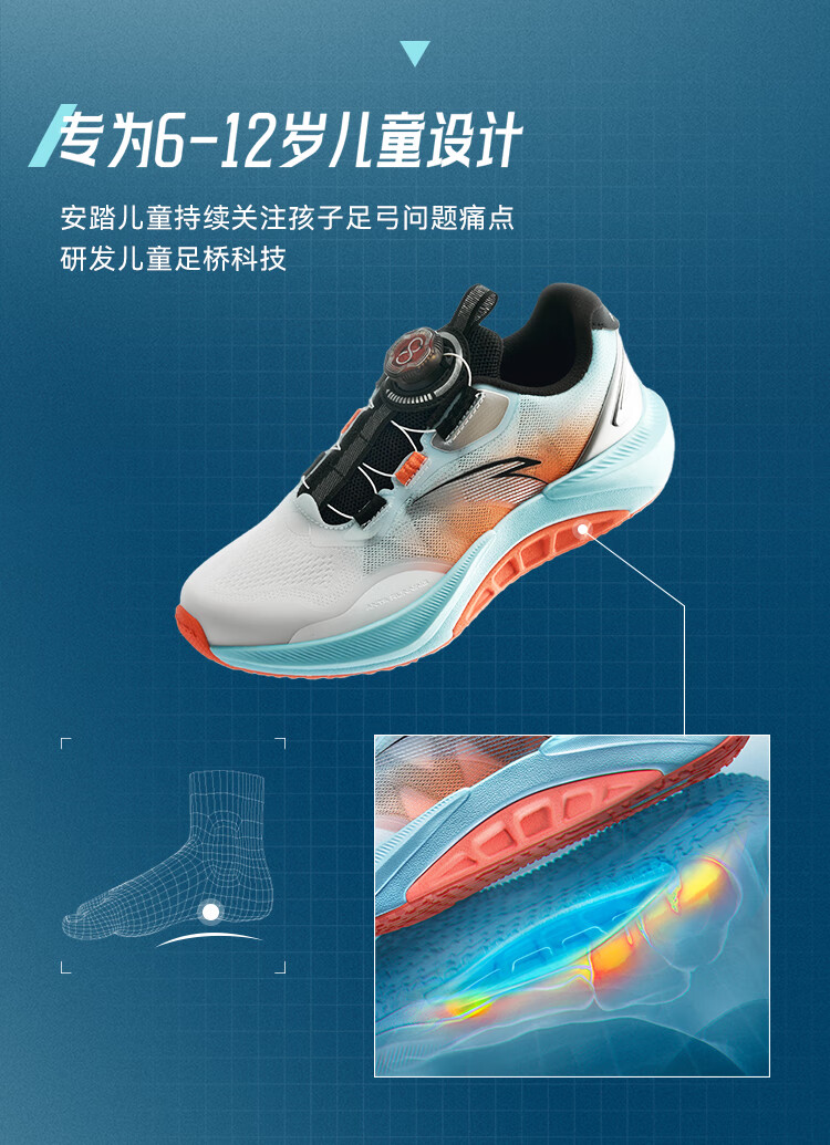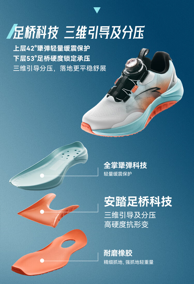 安踏儿童运动鞋男女大童足弓跑鞋犟弹科技旋钮扣专业跑步鞋322525503