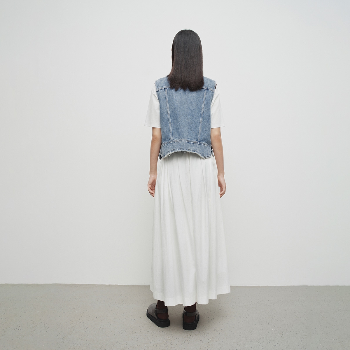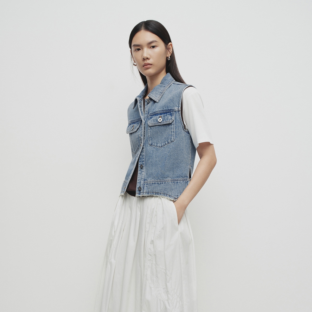 播商场同款时髦复古牛仔马甲女25春季新款叠穿蓝色上衣