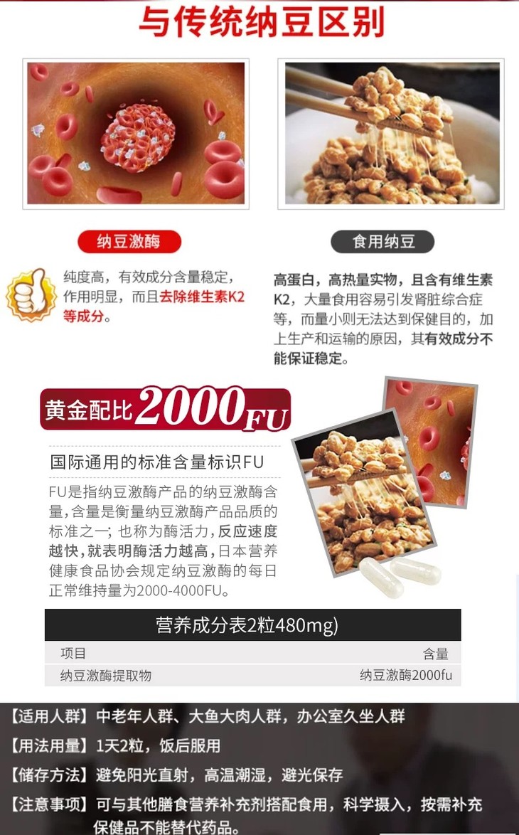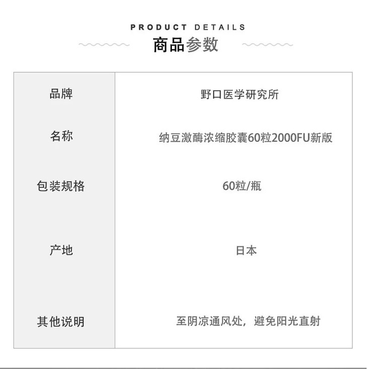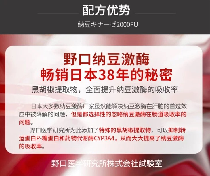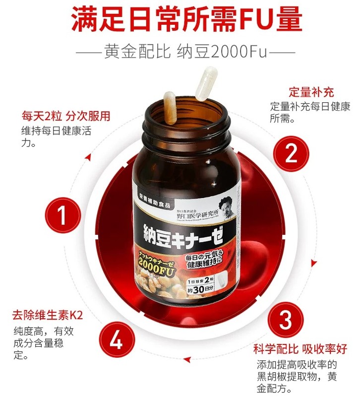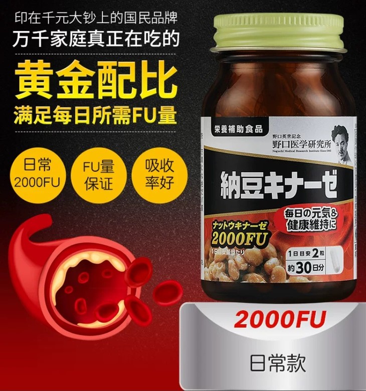 【日本直邮】Noguchi 野口医学研究所 纳豆激酶浓缩胶囊2000FU 60粒