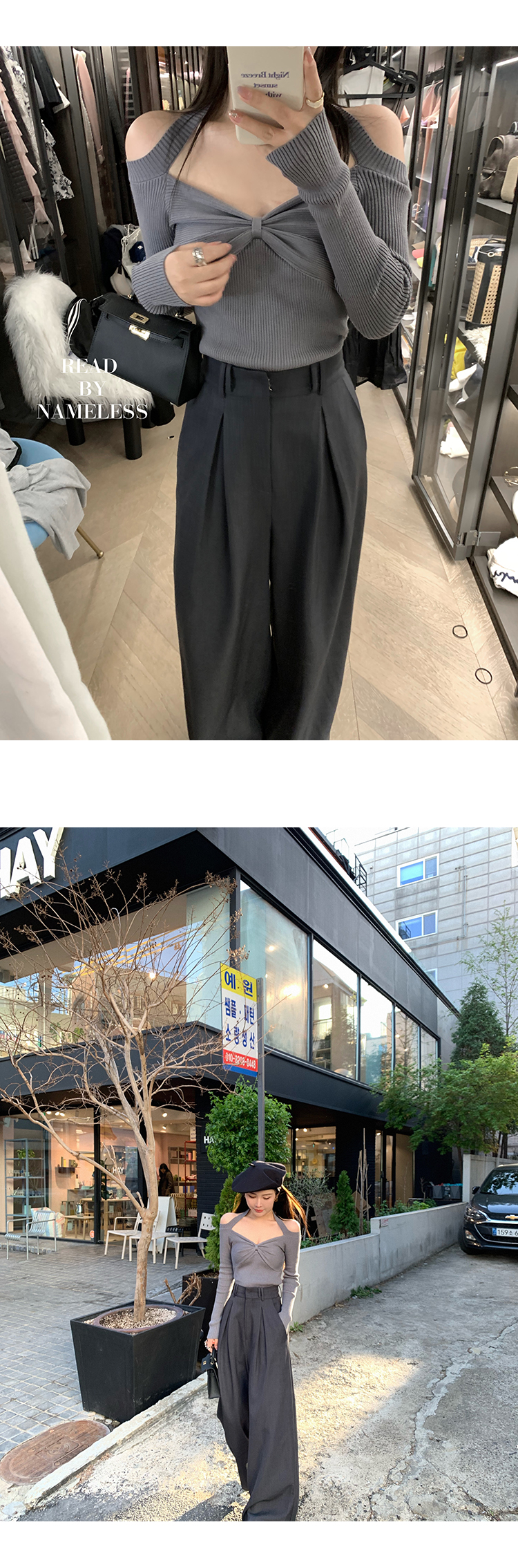 Read Nameless/灰色小细节露肩毛衣