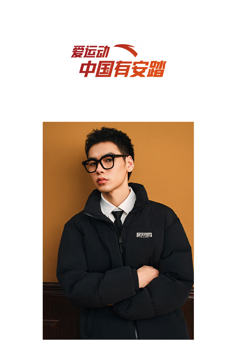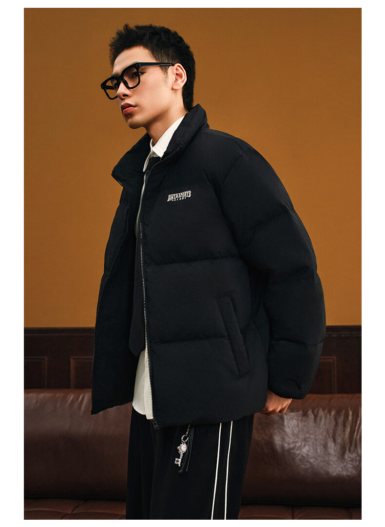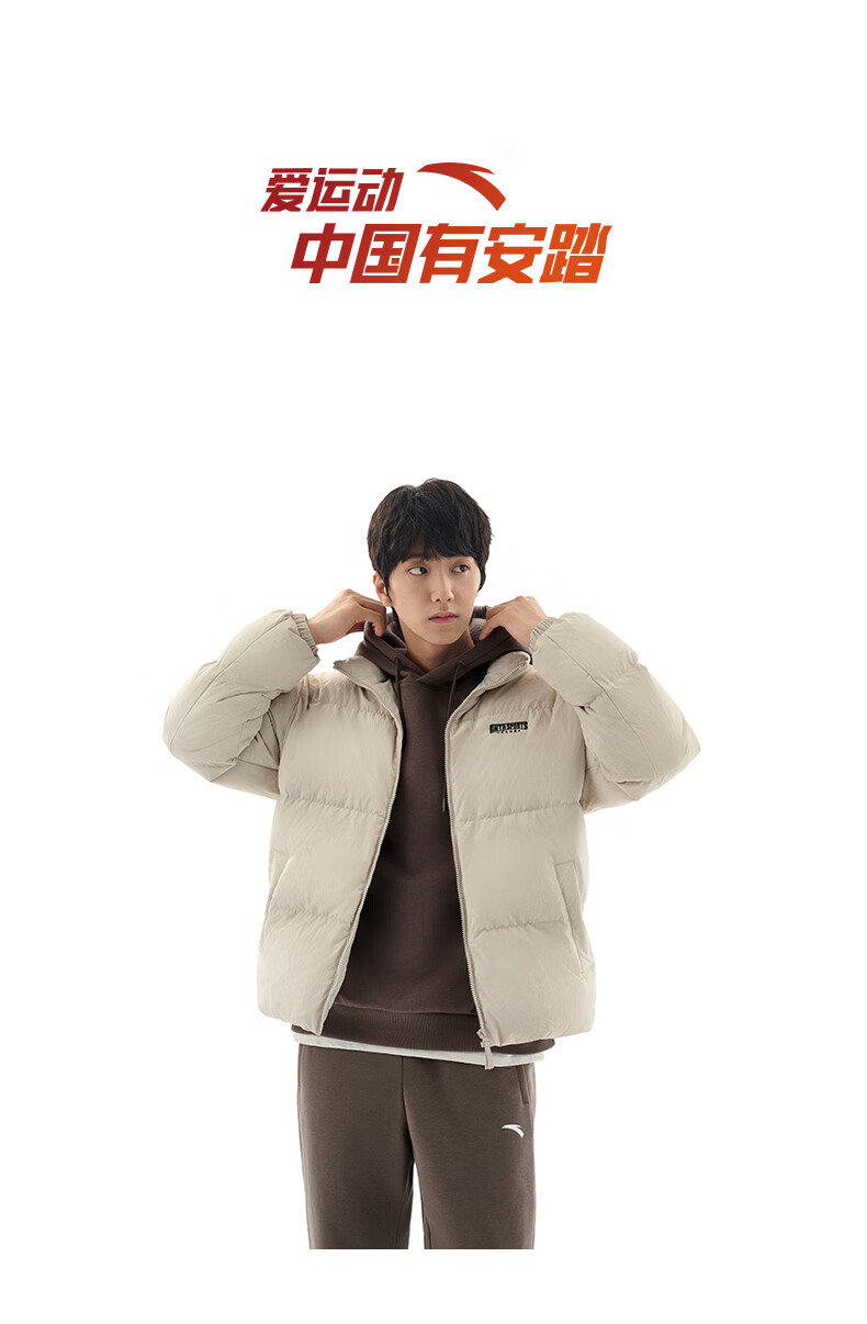 安踏运动复古防泼水男士宽松立领防风羽绒服152548901N