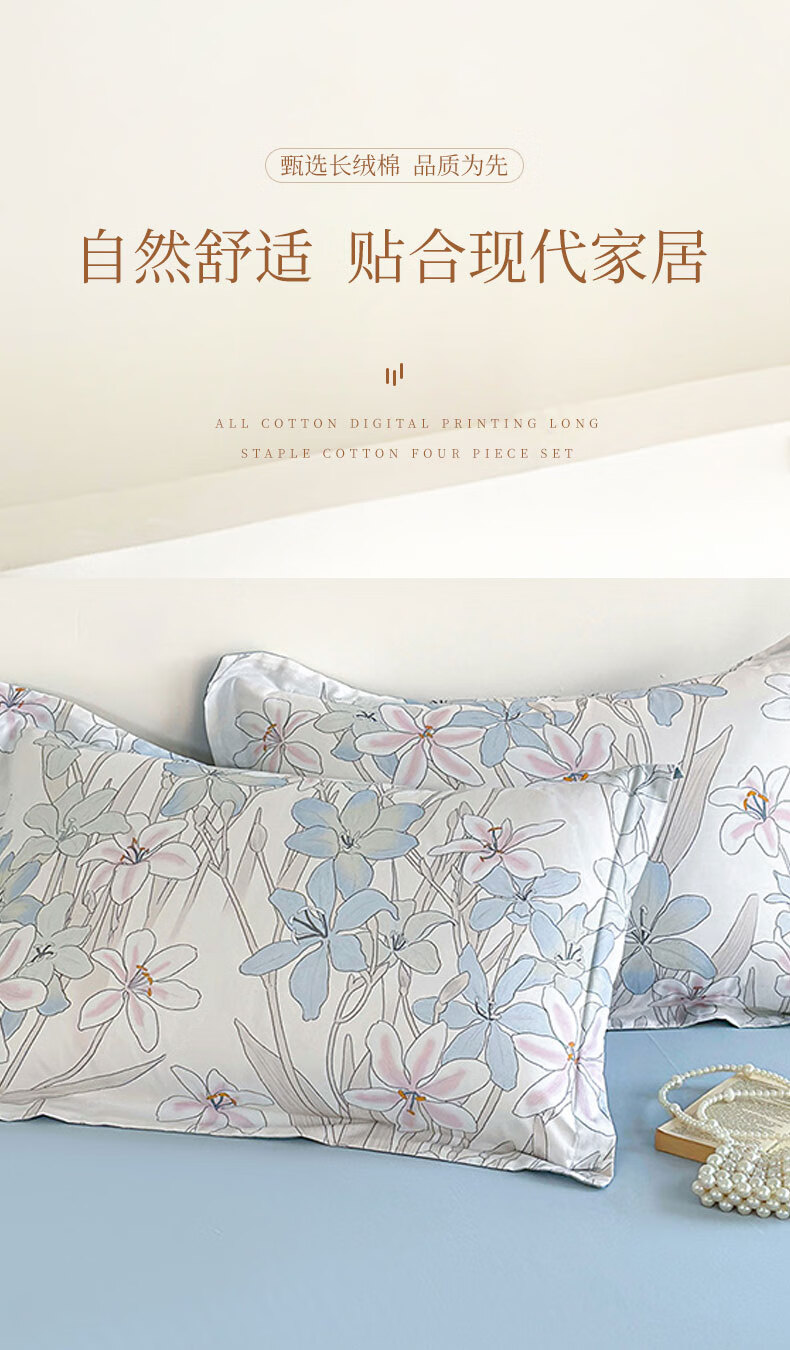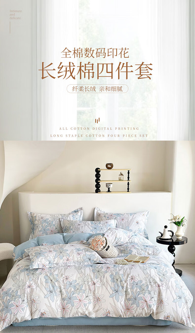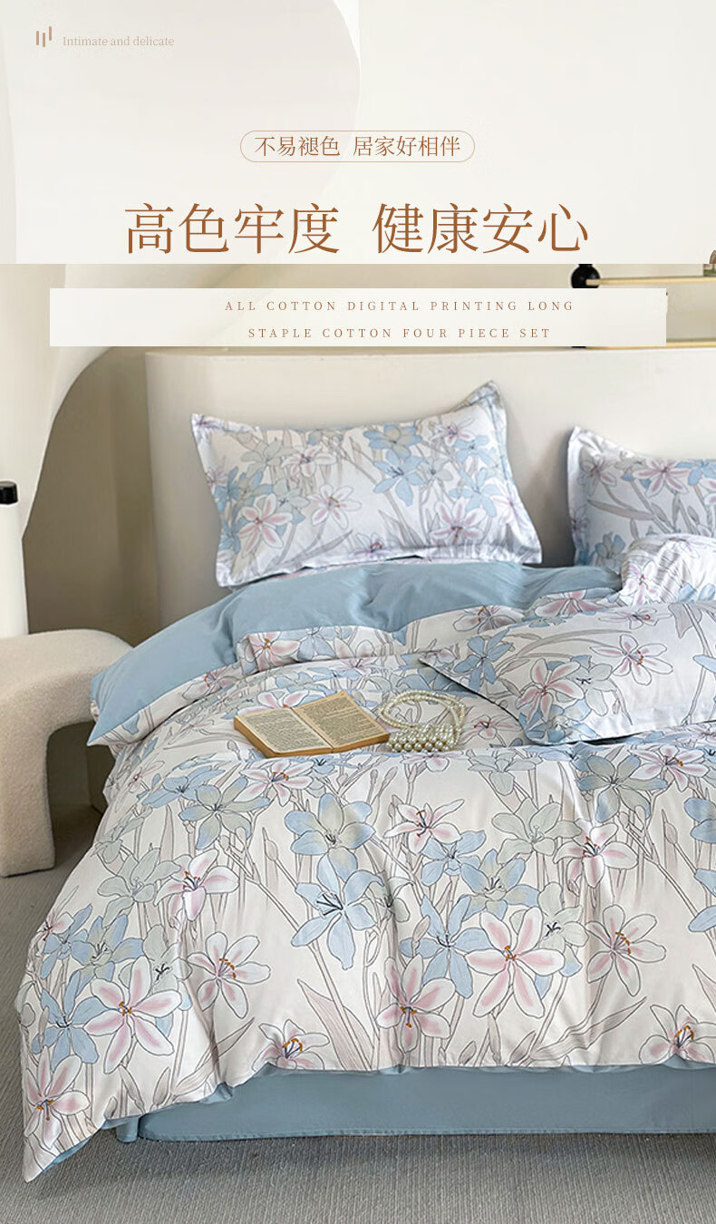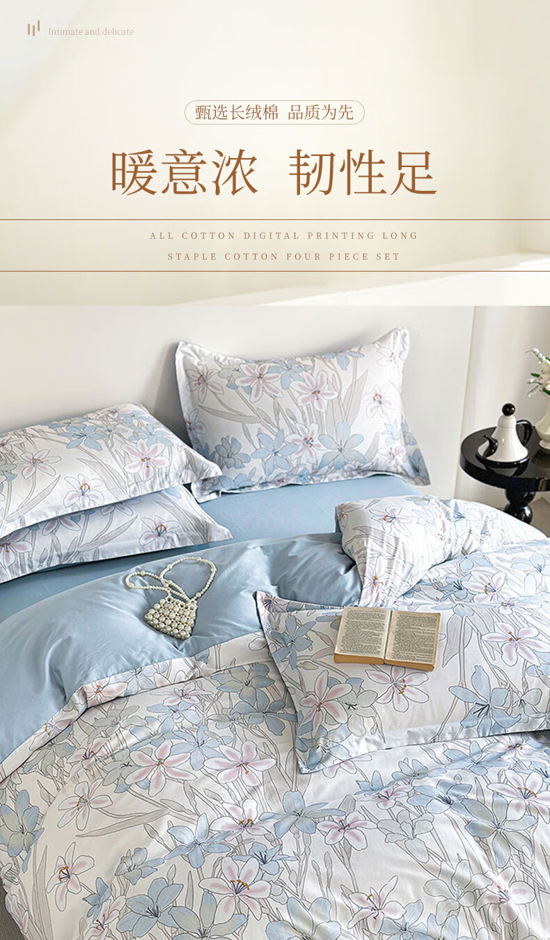 百丽安娜数码长绒棉印花四件套悦听花语