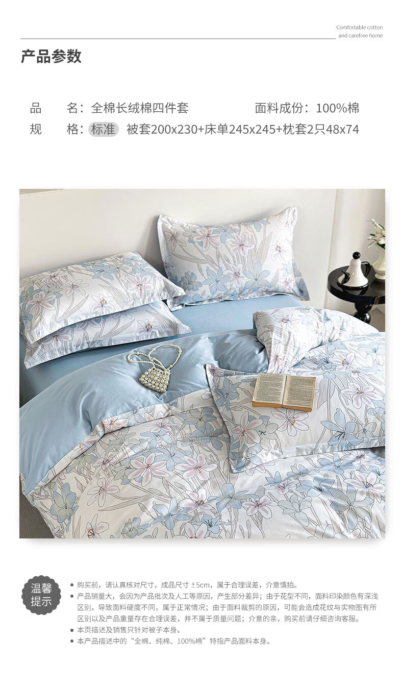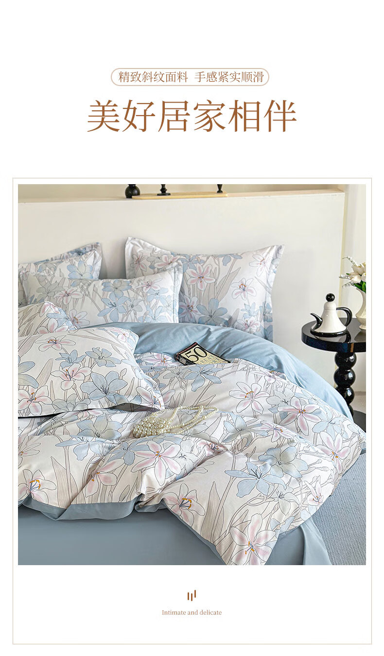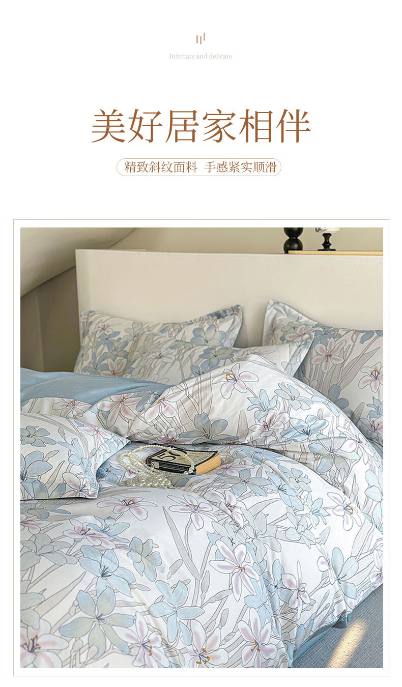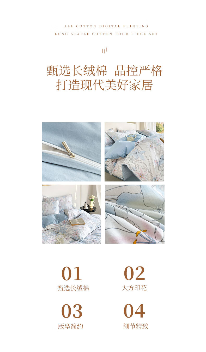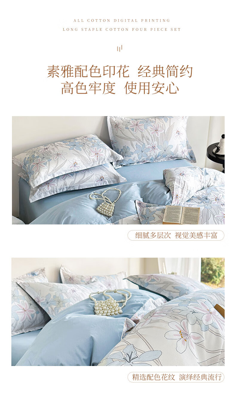 百丽安娜数码长绒棉印花四件套悦听花语
