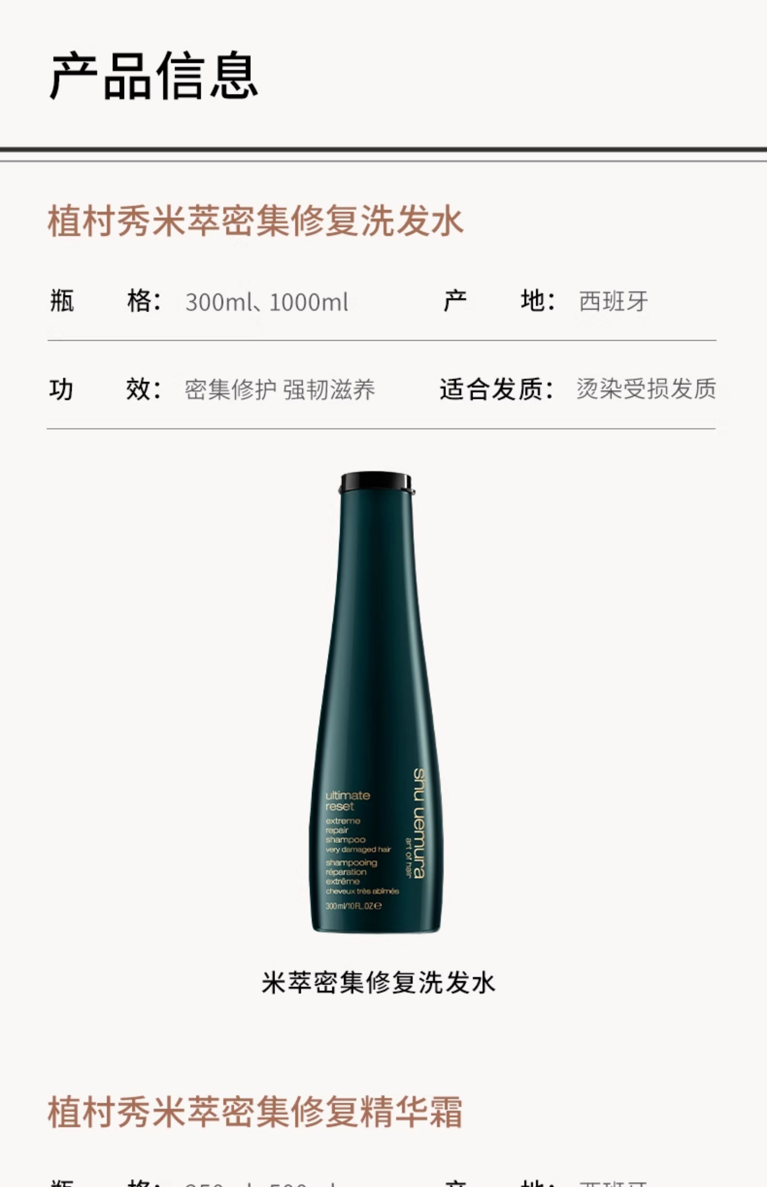 【保税仓】植村秀美发 米萃密集修护洗发水300ml