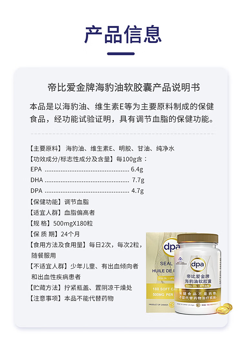 dpa 帝比爱 金牌海豹油软胶囊 180粒/瓶