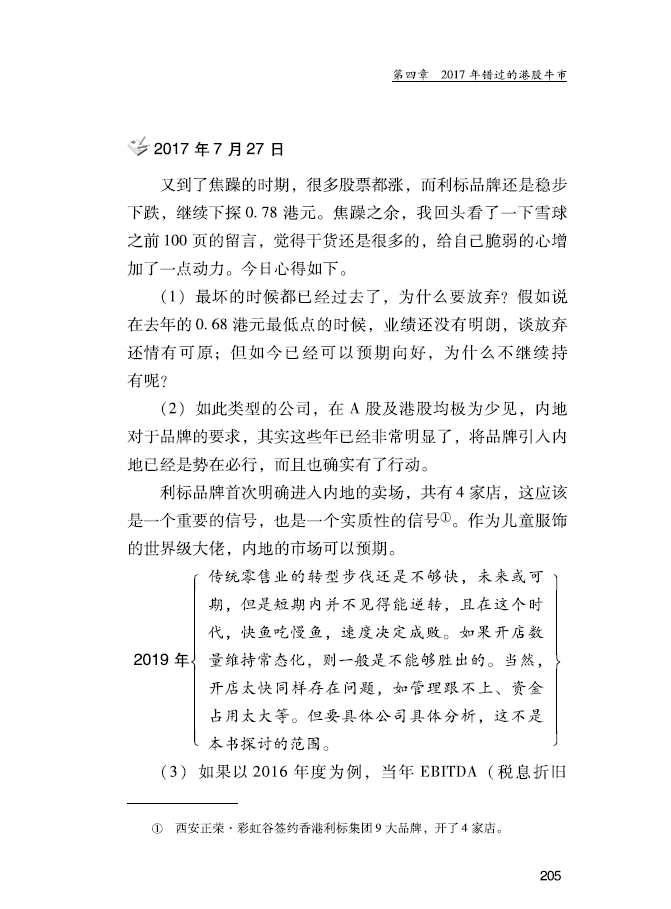 第四章2017年错过的港股牛市17601学习何为老千股17602第二位恋人:国美电器17903与波司登的感情纠葛18704新的或永远善变:保利协鑫能源19305选错了的情人:利标品牌200
