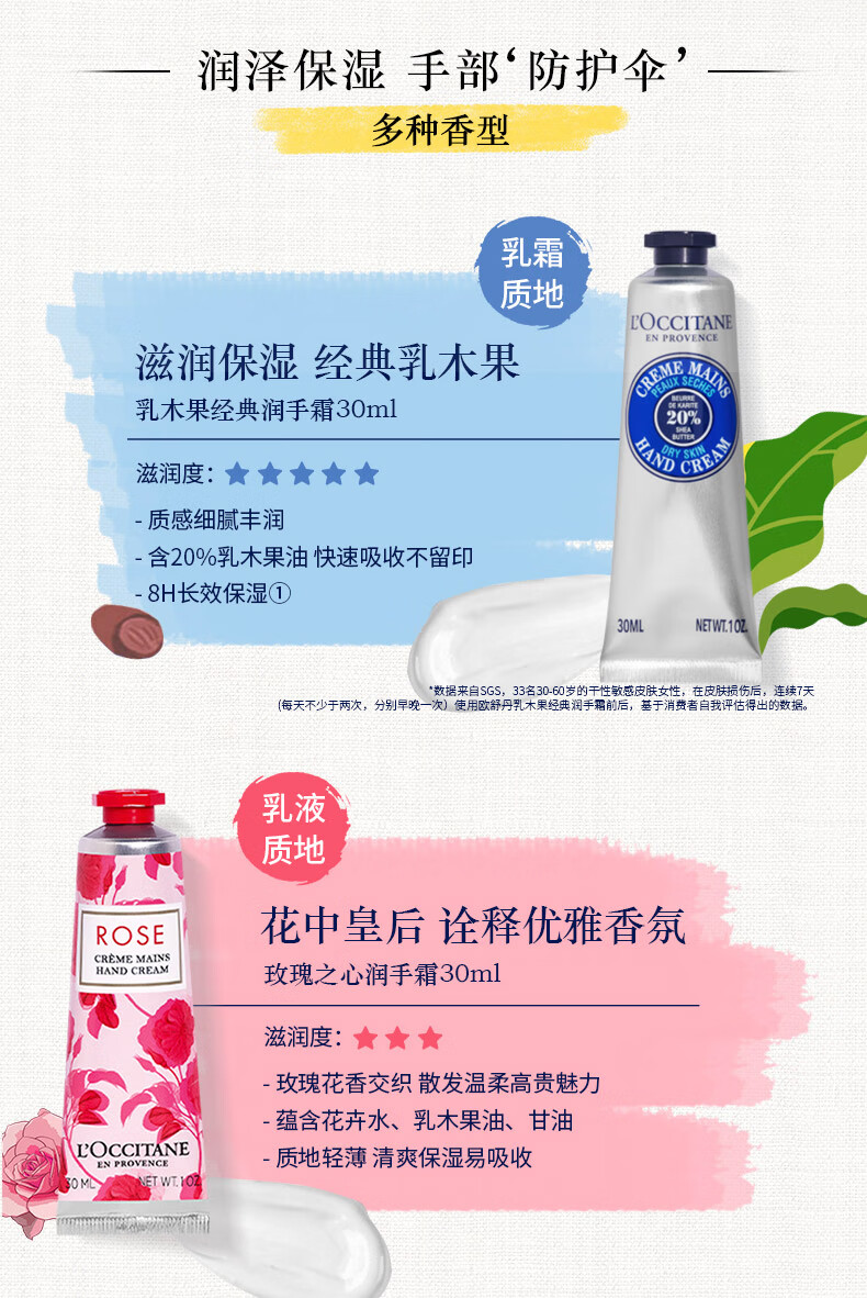 欧舒丹(L'OCCITANE)护手霜套装礼盒30ml*8 (乳木果+熏衣草+云中月桂+马鞭草+玫瑰之心+甜蜜樱花+甜扁桃+芍药花香)