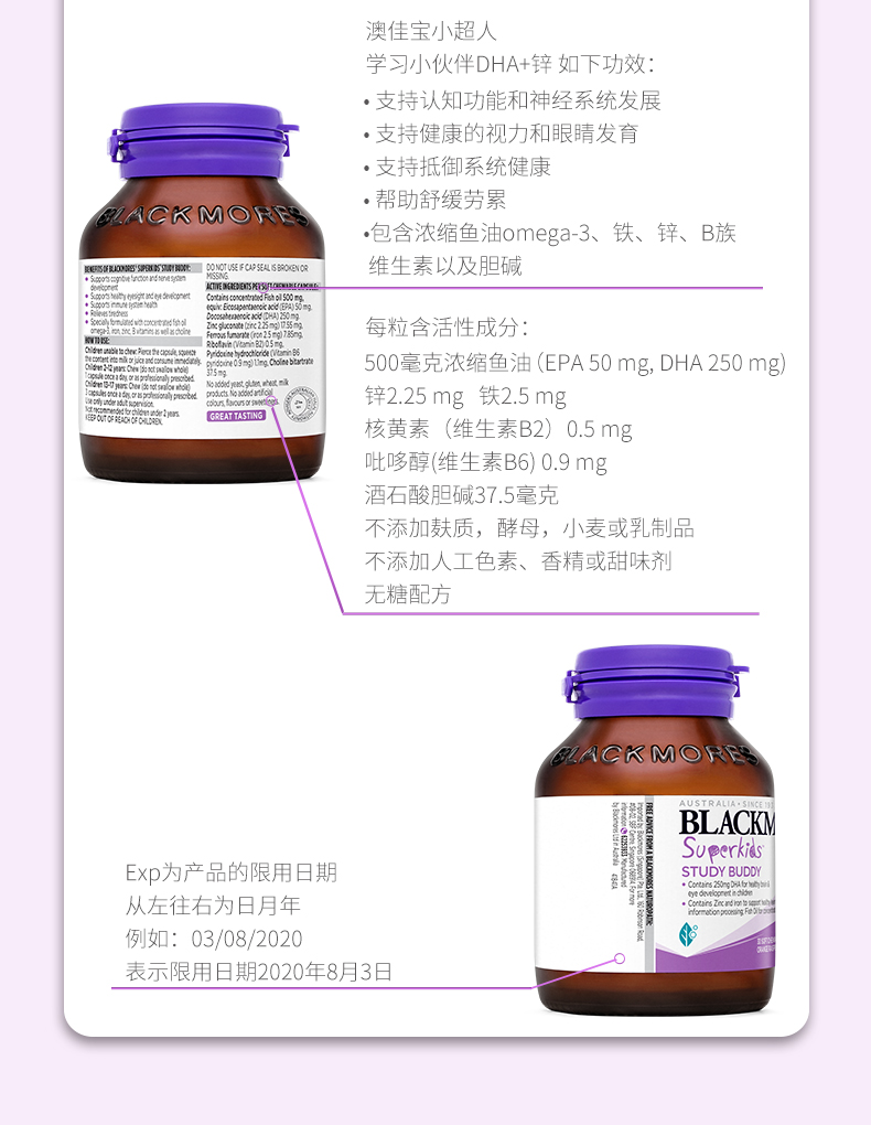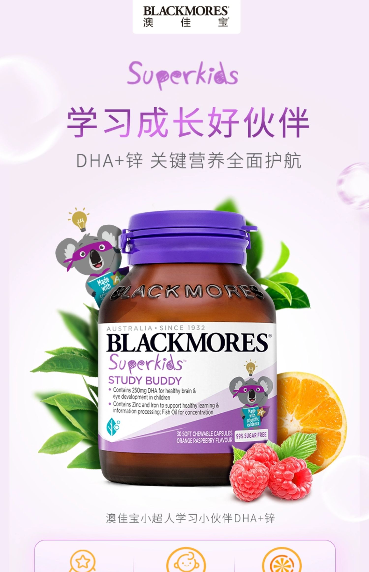 【保税仓】Blackmores澳佳宝小超人DHA加锌胶囊30粒/瓶