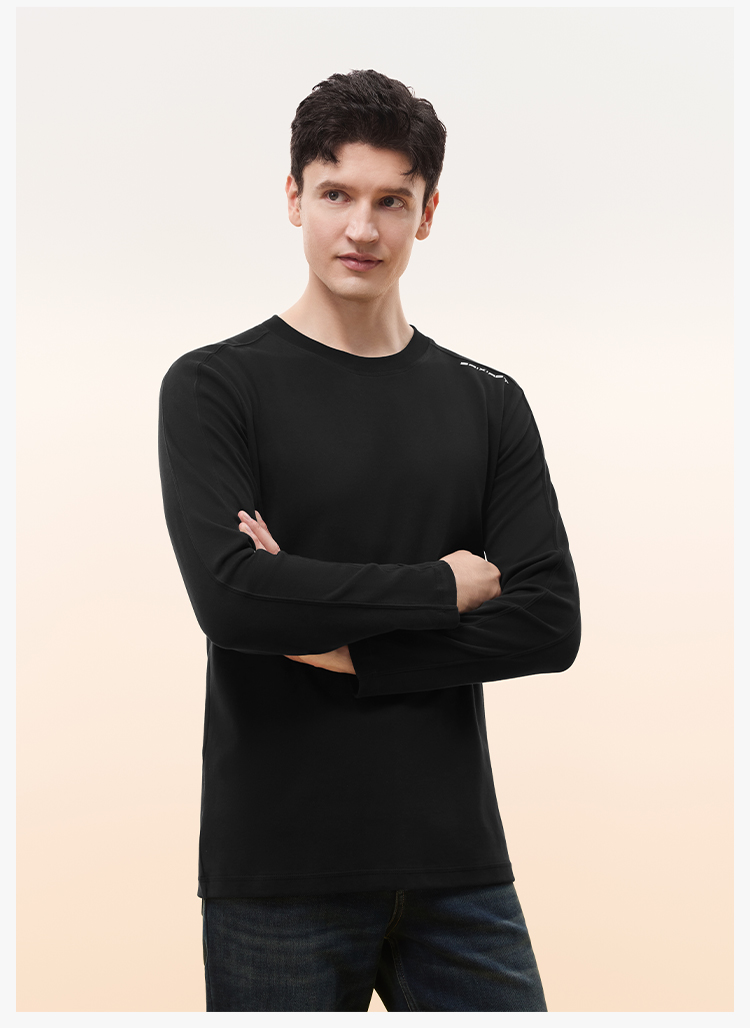 拇指白小T液氨丝柔刺绣圆领长袖T恤无限系列