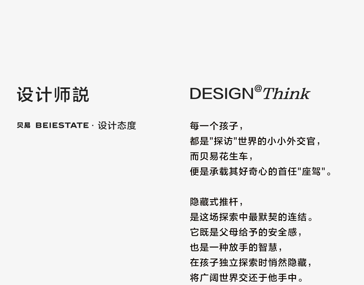 - 「BEIESTATE贝易」以极简设计为风格,主打兼顾设计、品 质和性价比的母婴产品,以创造极致细腻、不张扬、 不世俗的当代母婴用具,为用户日常亲子生活与幼儿 的启蒙早教提供新选择。