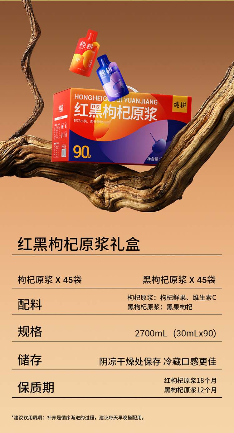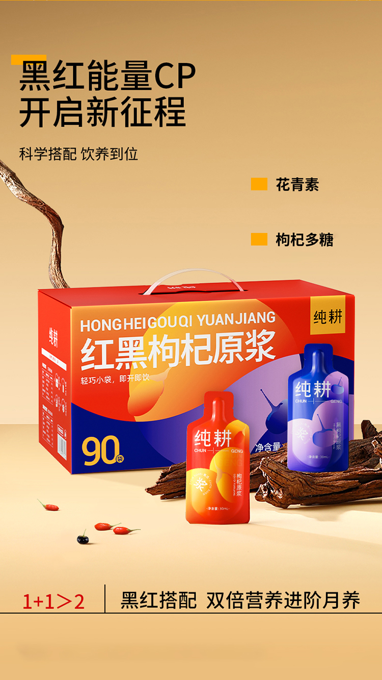 【到手96袋】杞里香 纯耕量贩装红黑枸杞原浆组合 30ml/袋 赠:6袋试饮装(枸杞原浆*3袋+黑枸杞原浆*3袋)