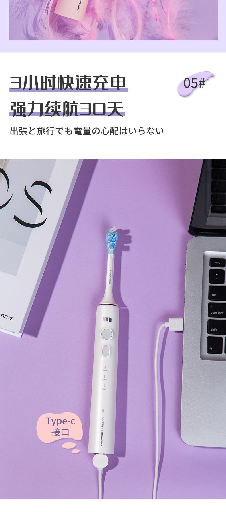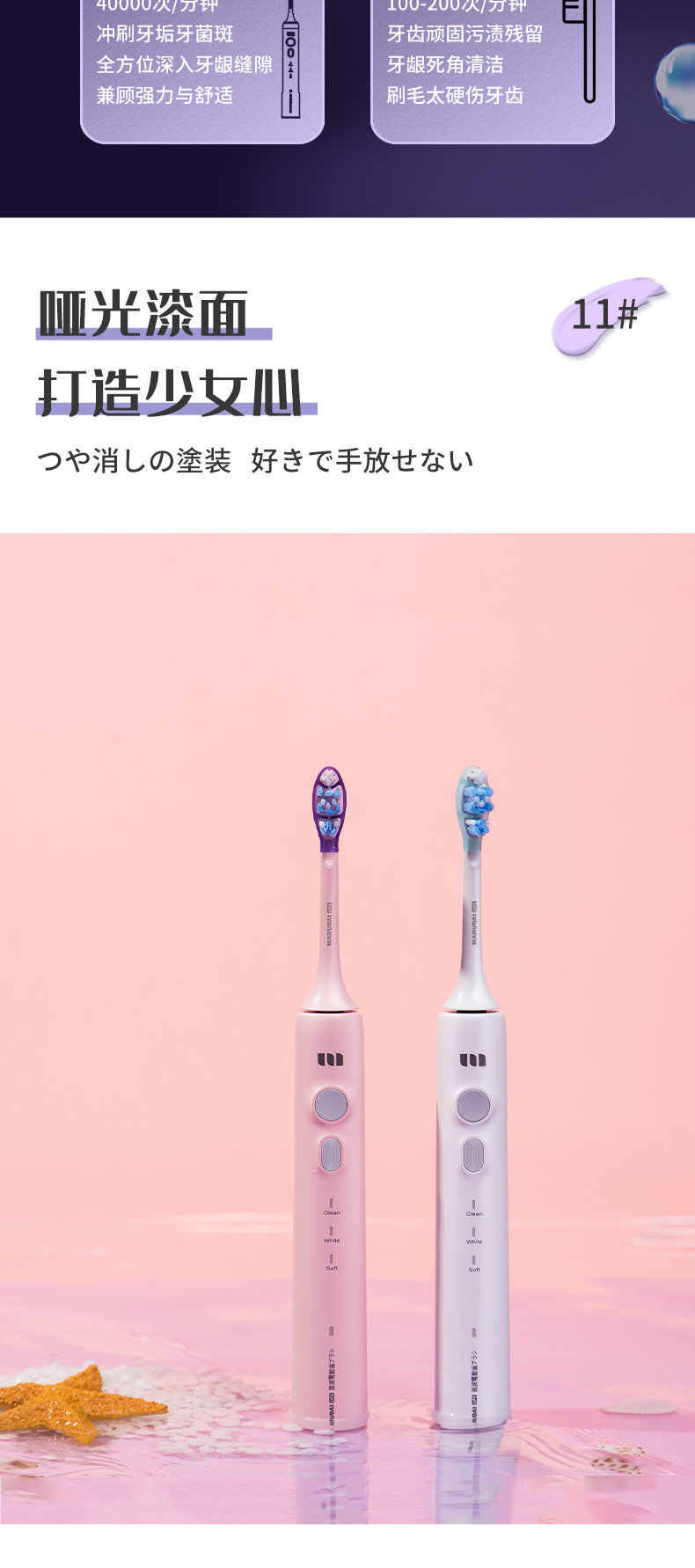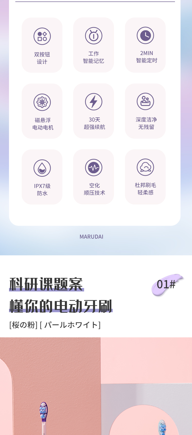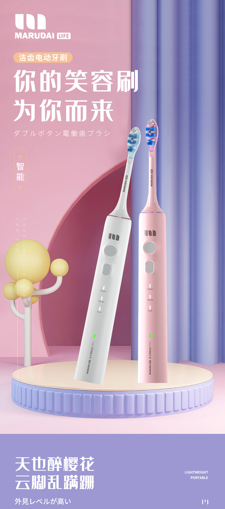 Marudai 丸太 双按钮声波电动牙刷 白色