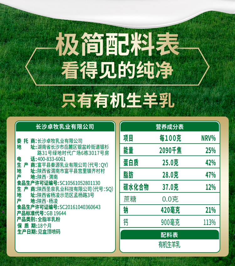 【双有机 低GI&低嘌呤认证 小绿盒纯羊奶粉】卓牧有机纯羊奶粉 175g/盒(可奶卡提货)
