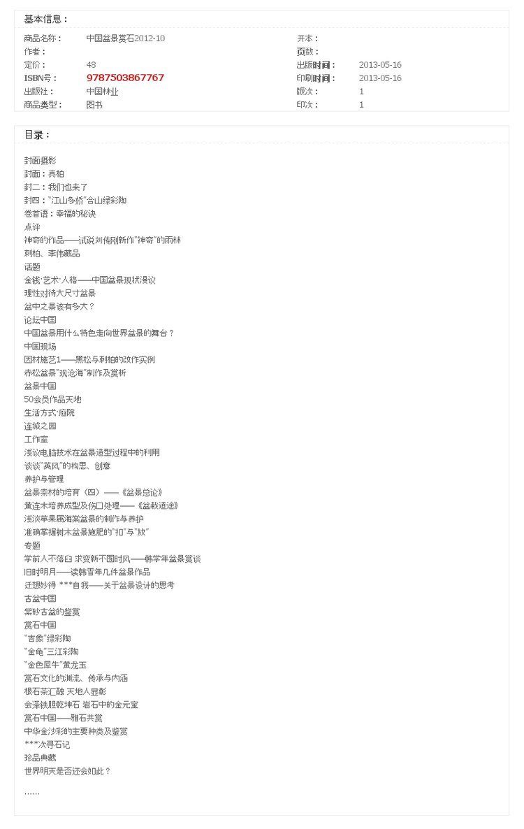 中国盆景赏石2012-10 中国盆景艺术家协会主编 6776 中国林业出版社
