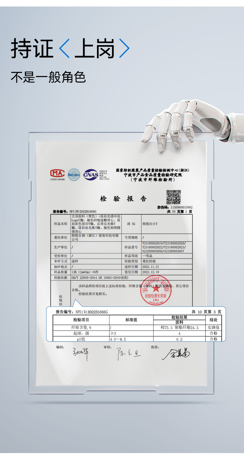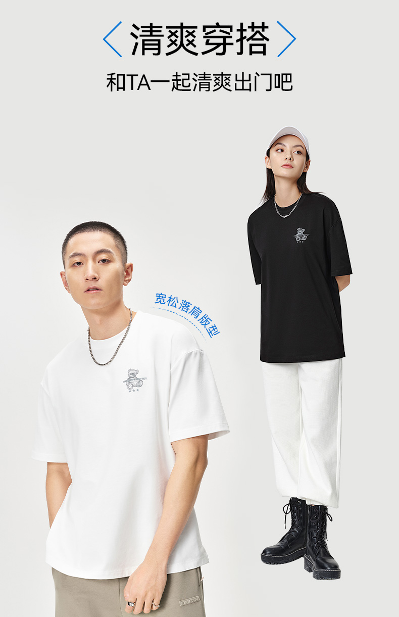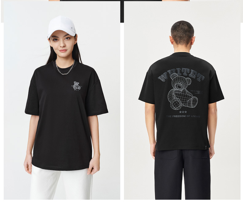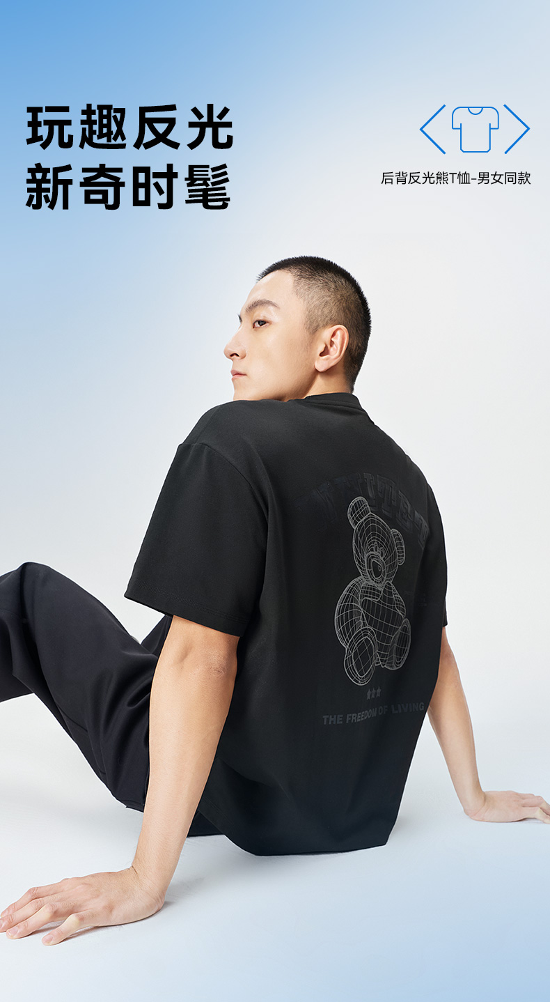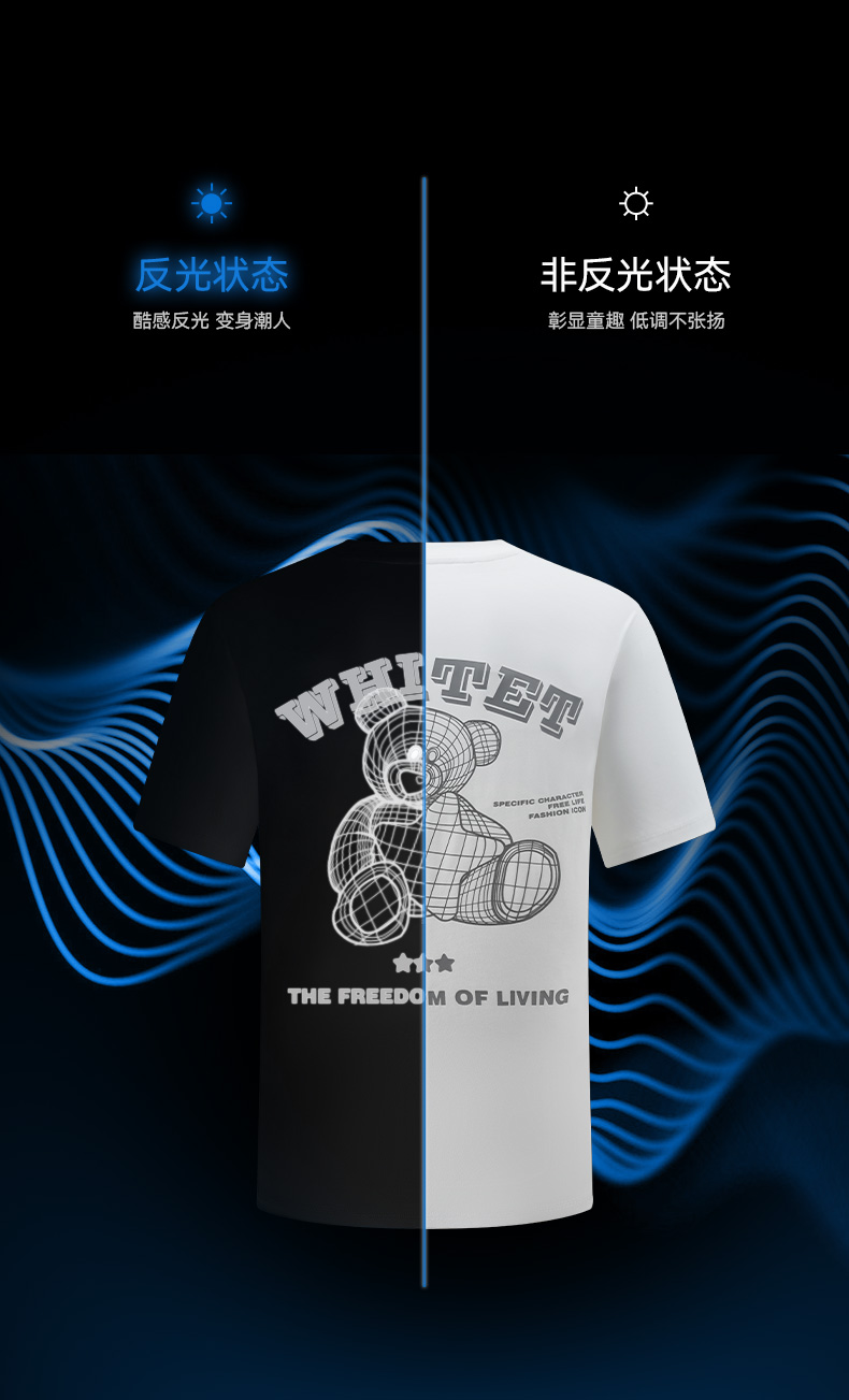 拇指白小T后背反光熊T恤无畏系列