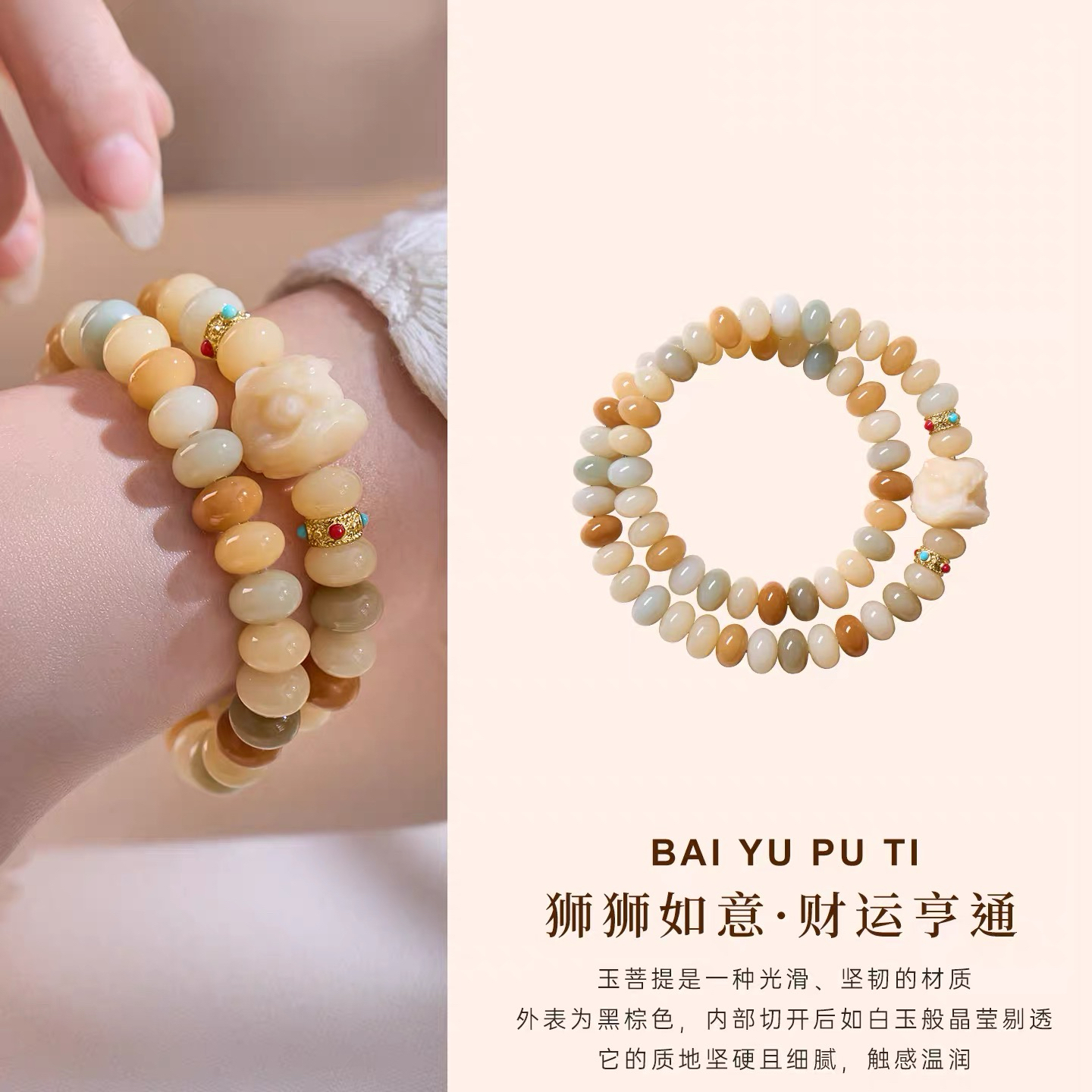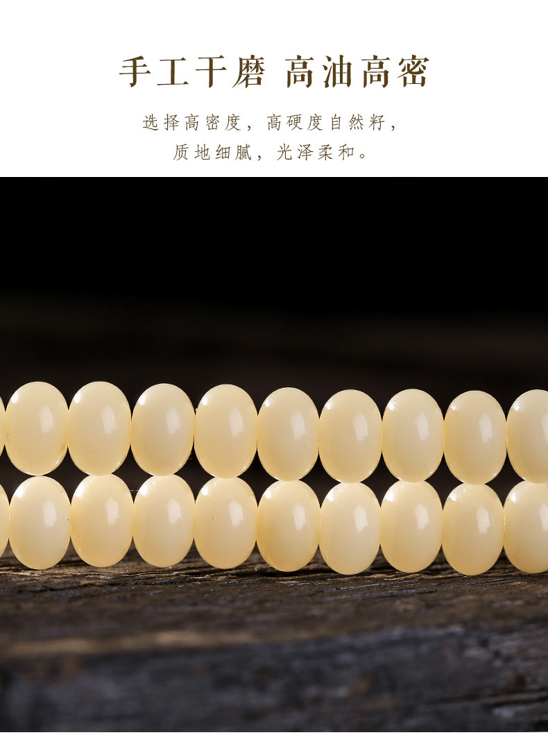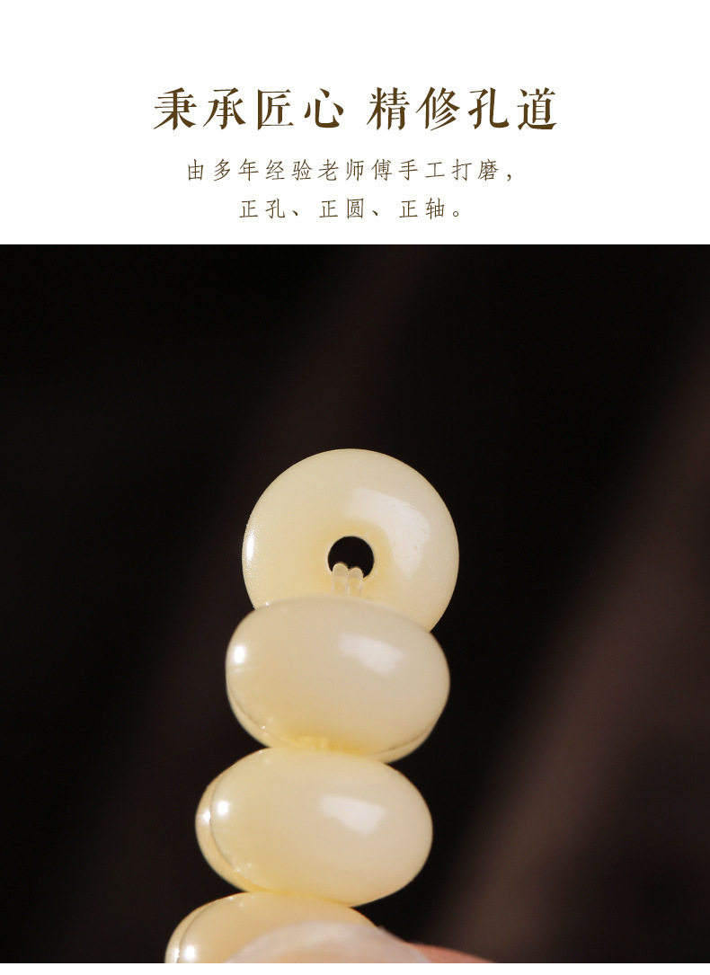 【敦煌菩提算盘珠手串】敦煌福泽天然白玉奶豆菩提手串 醒狮莲花学生男女菩提手串