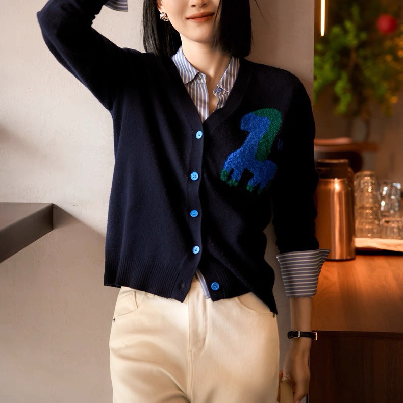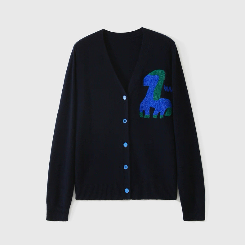 奇妙小马~100%纯山羊绒开衫女重工提花撞色毛衣针织衫CYR260576