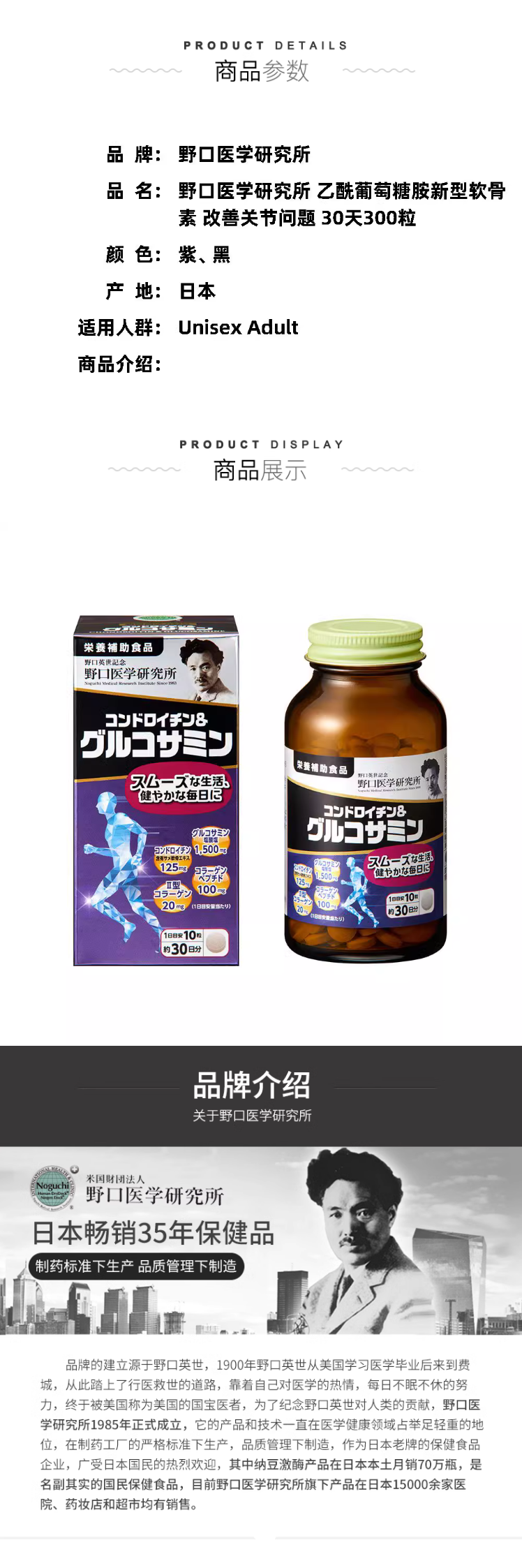 【日本直邮】Noguchi 野口医学研究所 乙酰胺新型软骨素 300粒