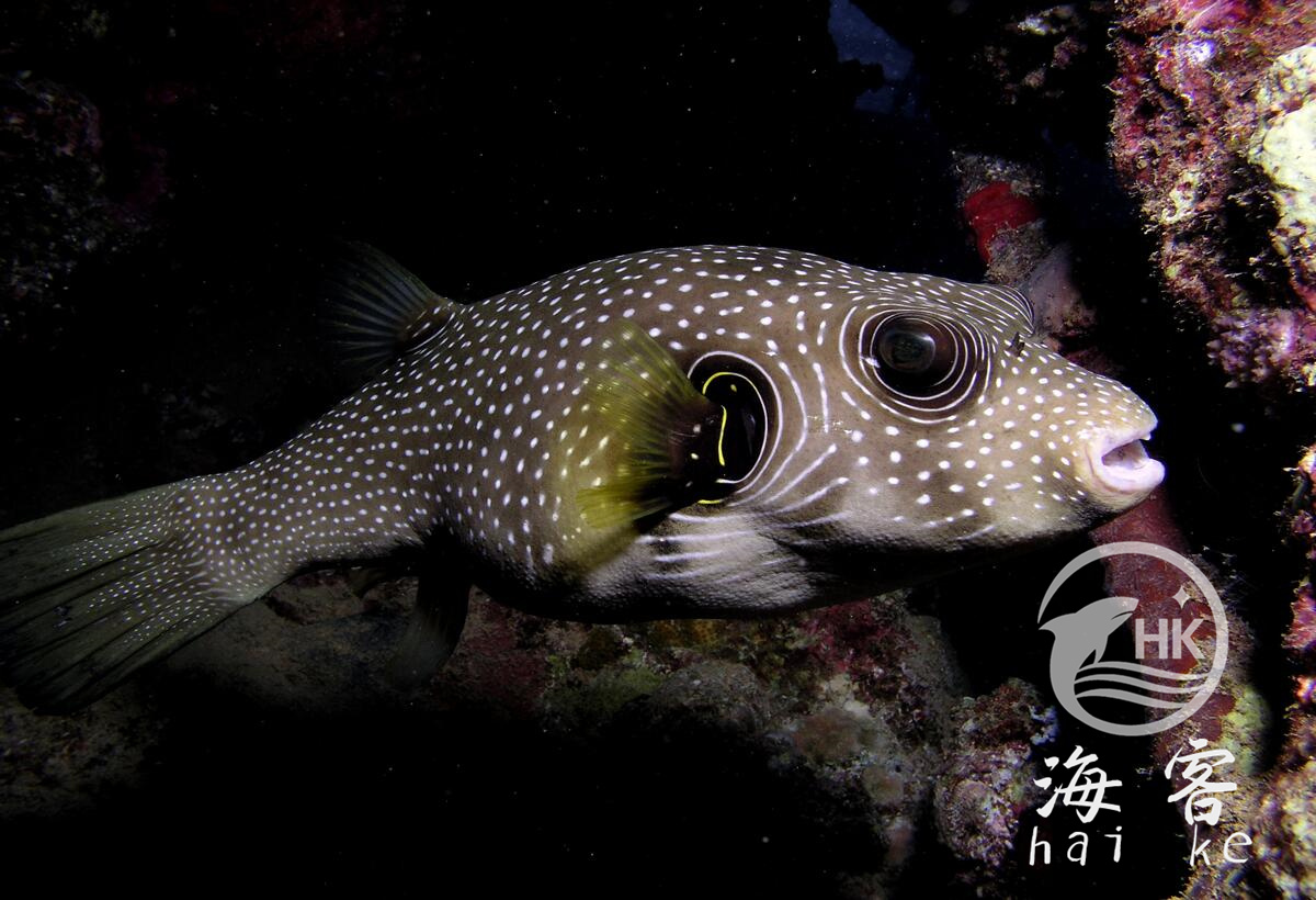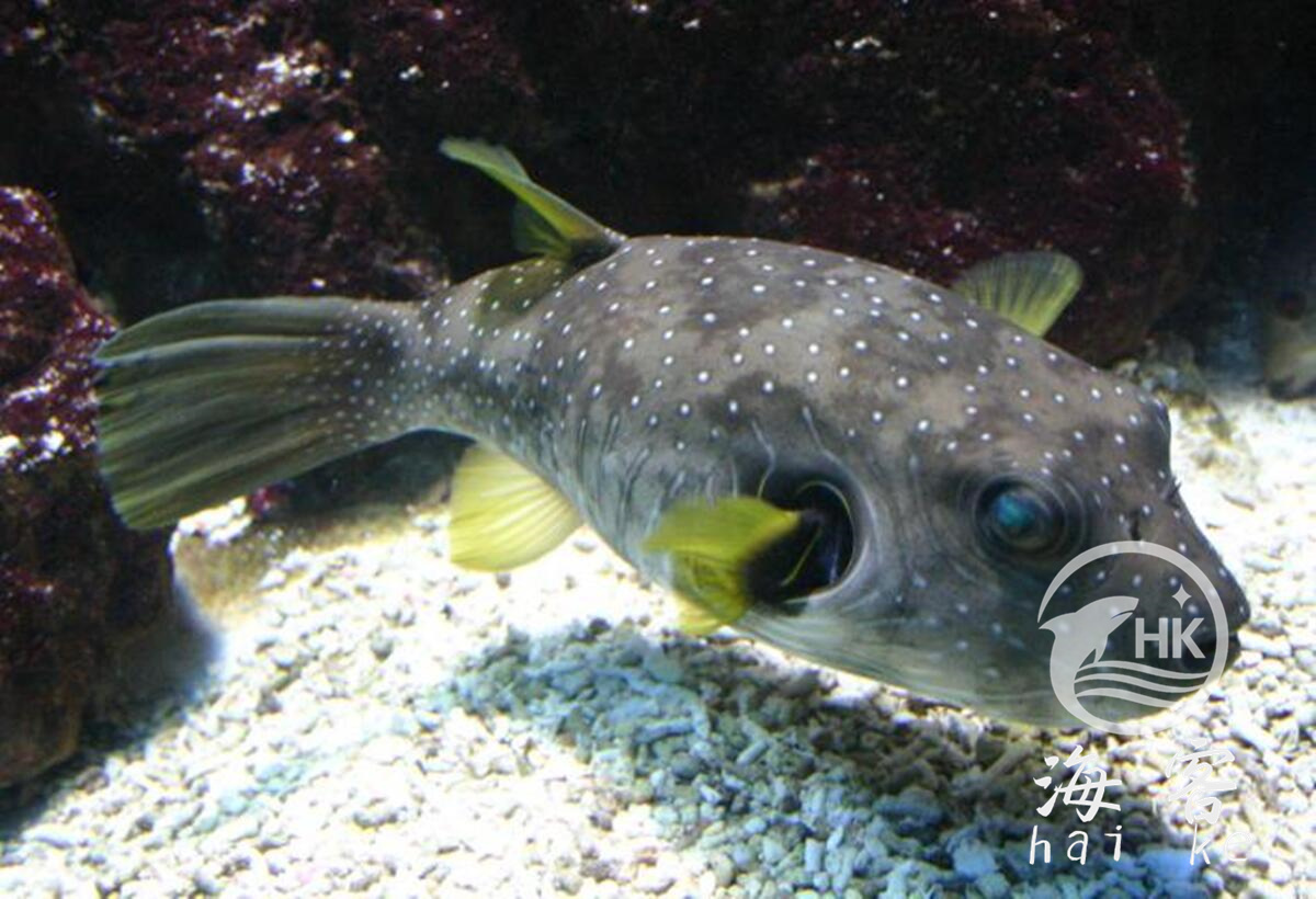 也叫纹腹叉鼻鲀、乌规、花规、绵规。身体上半部分覆盖着白色的斑点。个性可爱,有时候被称作“胖河豚或者狗面河豚”。尽管没有腹鳍和流线型身材,但不影响它的灵活和游动。鲀科鱼很聪明,会很快认识自己的主人。在野外,多栖息在红树林、海草丛及珊瑚礁地区。因为体型比较大,需要800升以上水族箱,良好的过滤系统和蛋分。用活石或者其他材料搭建一些洞穴作为藏身处,与大小差不多的鱼混养。白点河鲀可以利用其喙状牙齿咬碎发现的无脊椎动物。