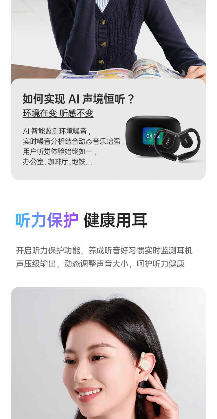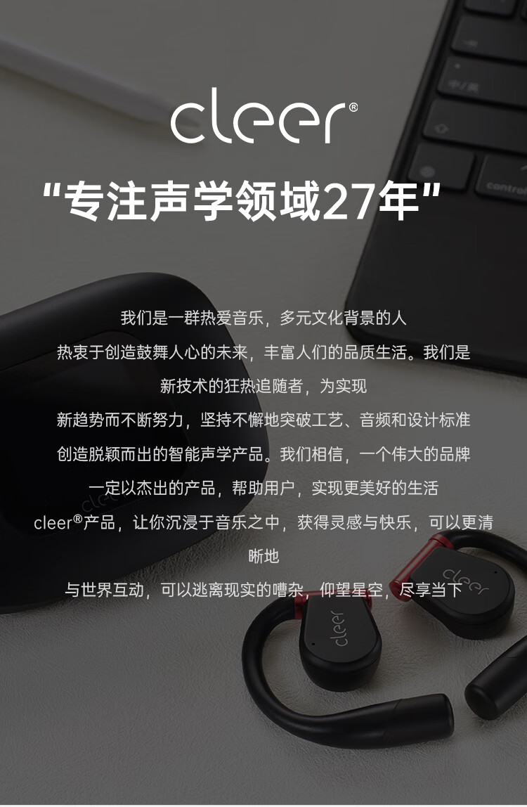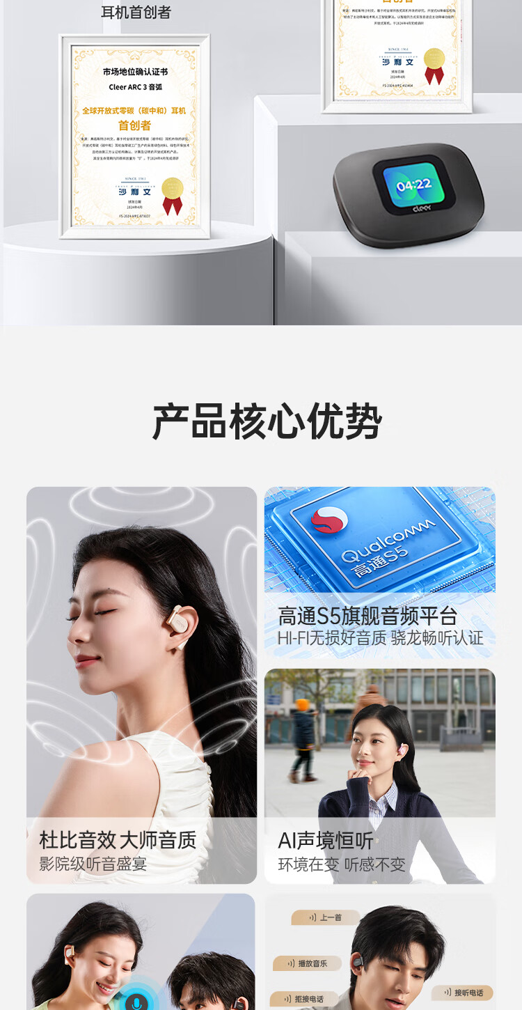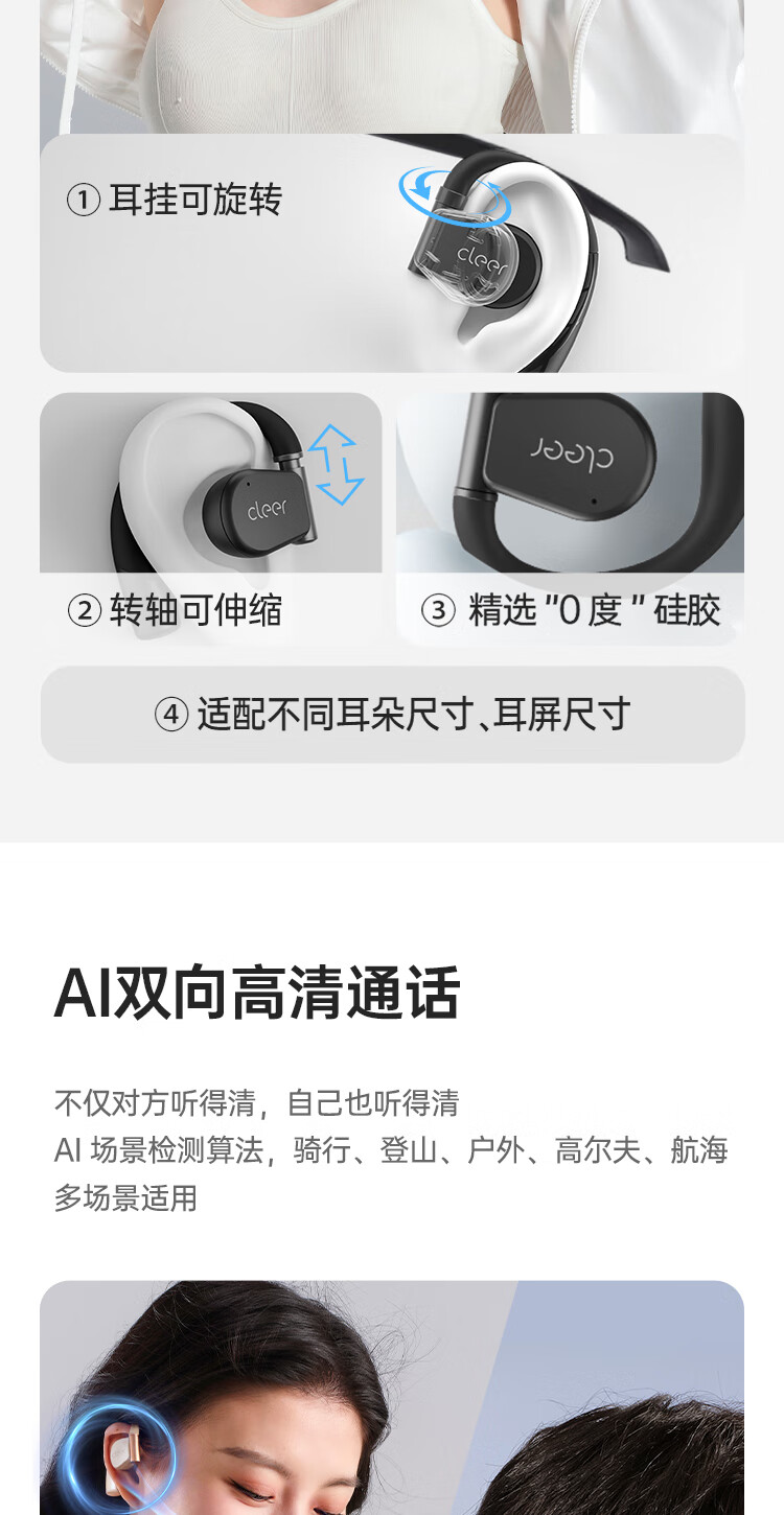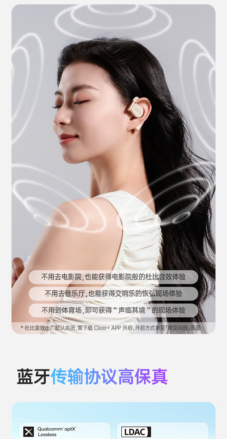 cleer【郎朗推荐】ARC3开放式耳机不入耳开放式杜比声空间音频AI智能无线蓝牙耳机挂耳式骨传导升级适用苹果华为