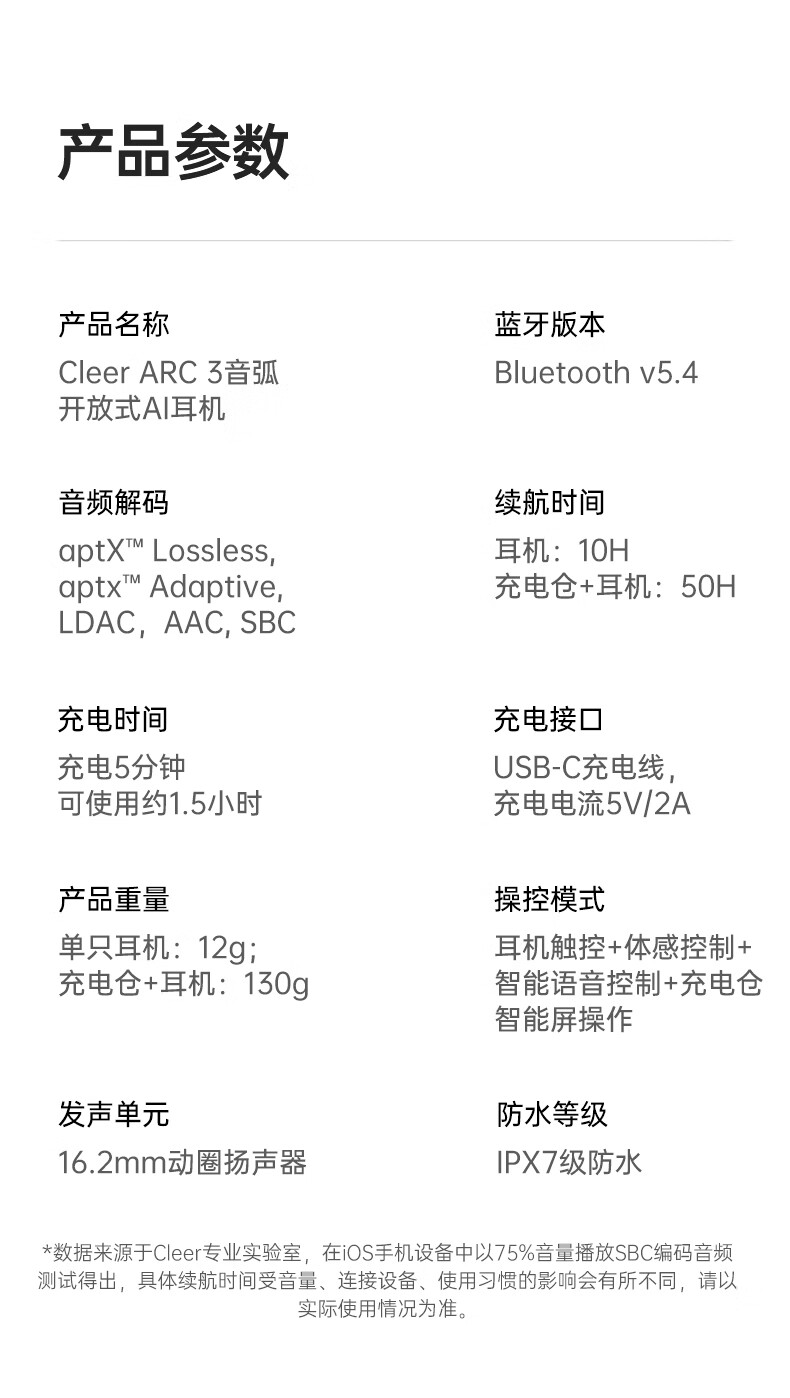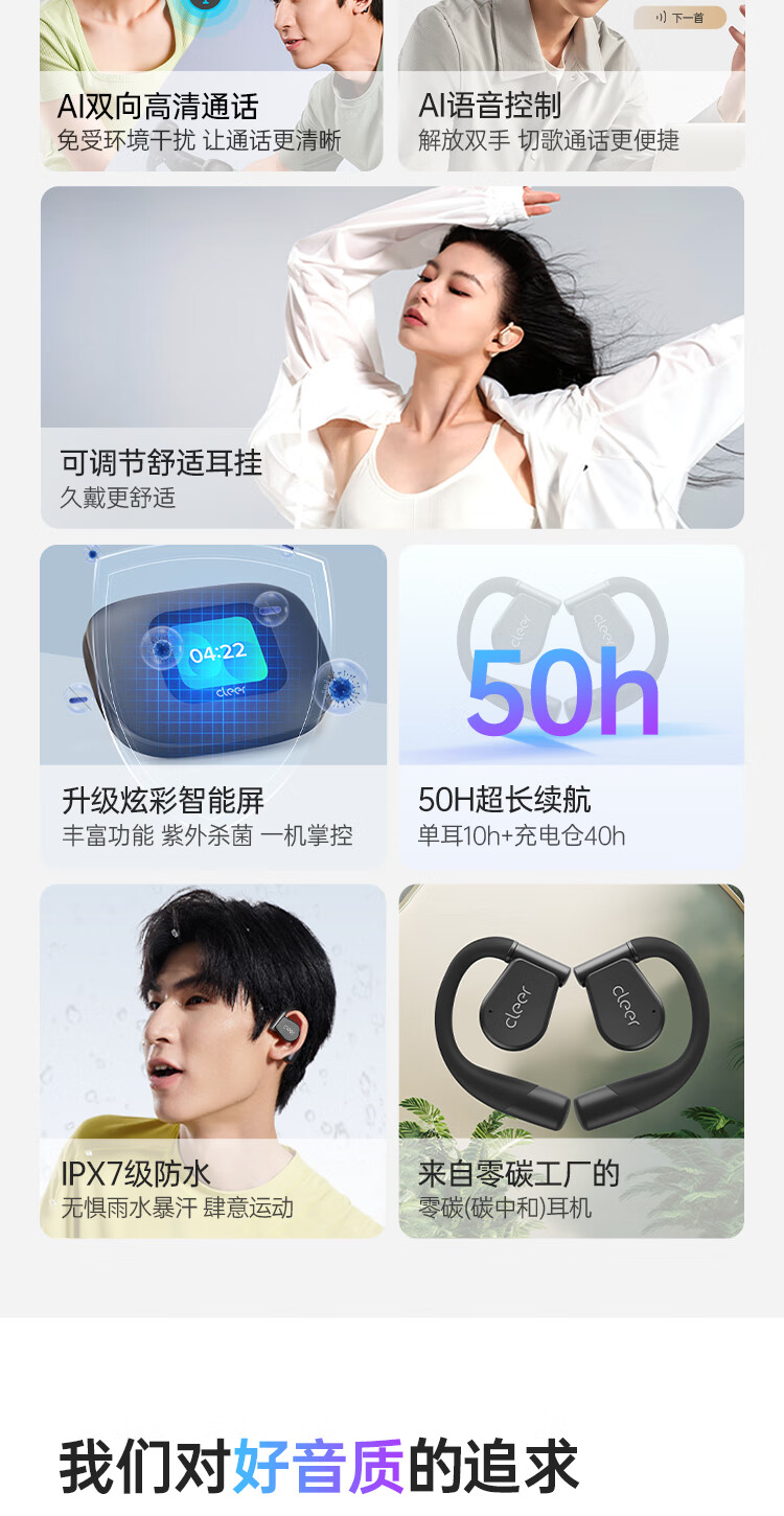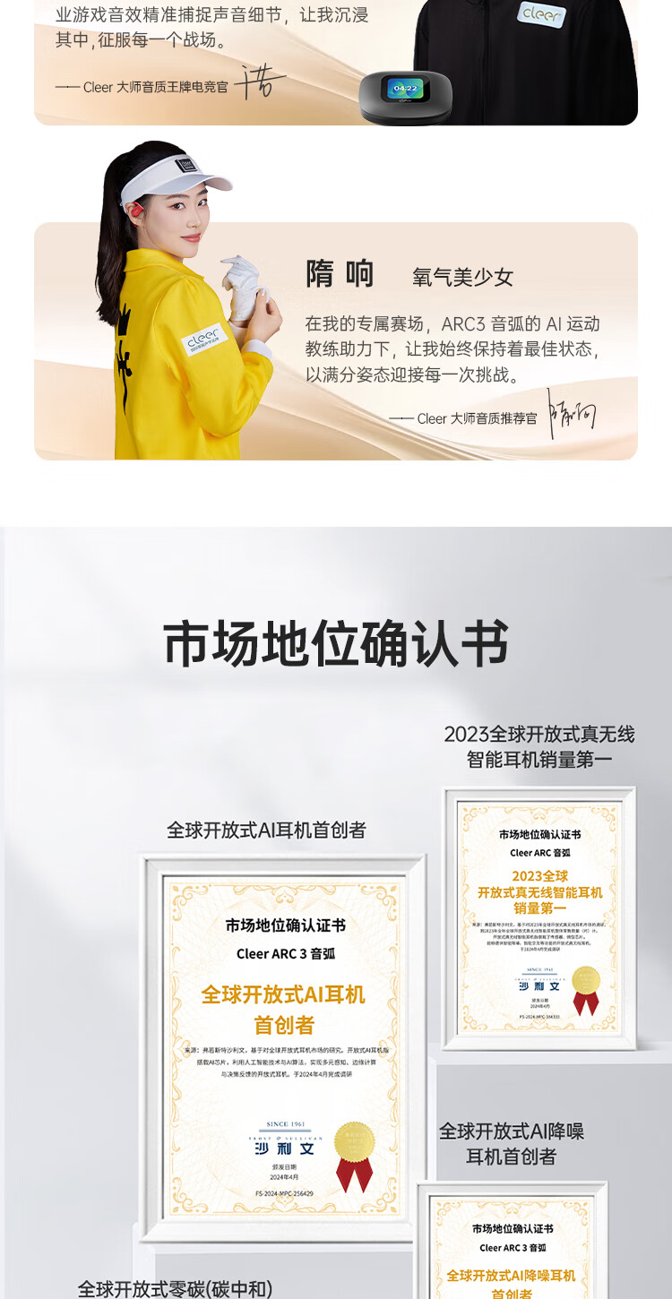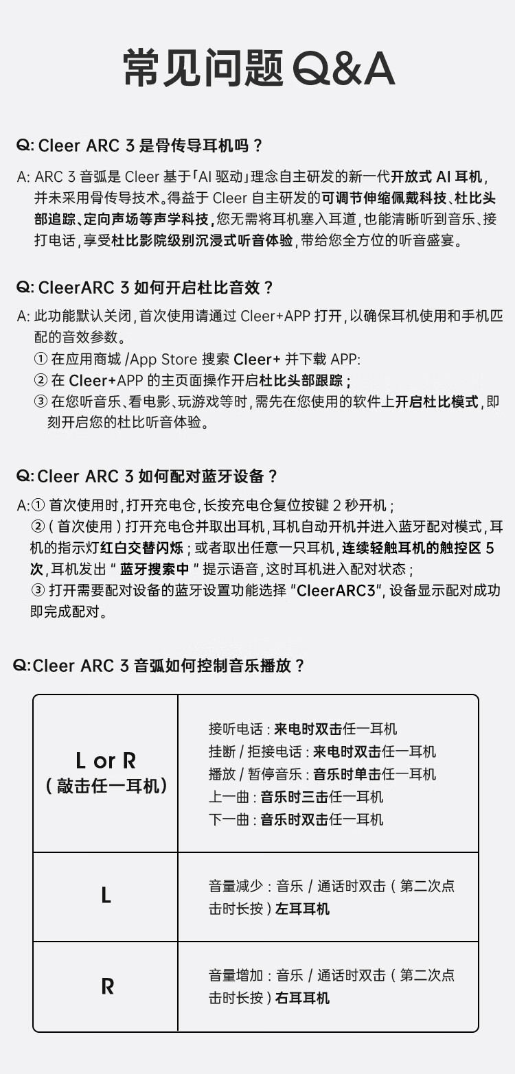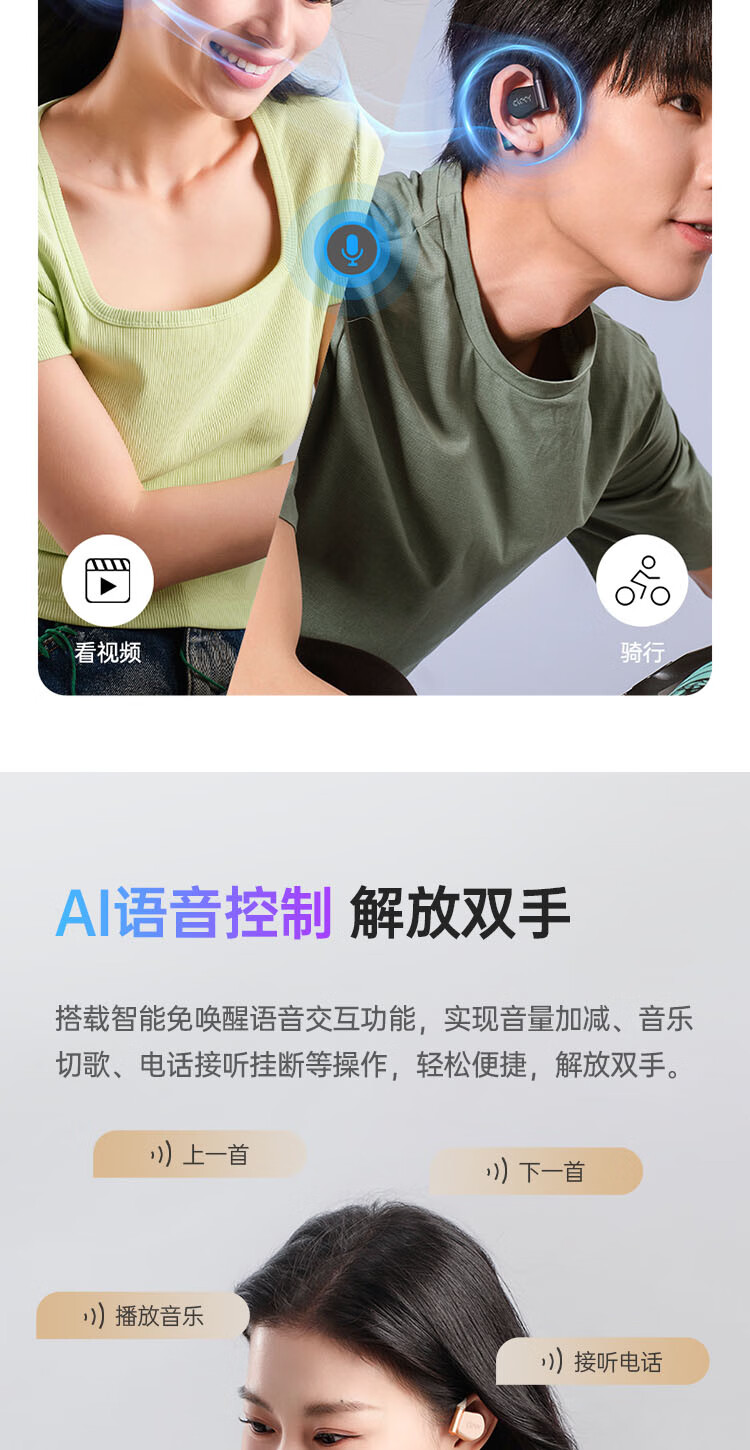 cleer【郎朗推荐】ARC3开放式耳机不入耳开放式杜比声空间音频AI智能无线蓝牙耳机挂耳式骨传导升级适用苹果华为