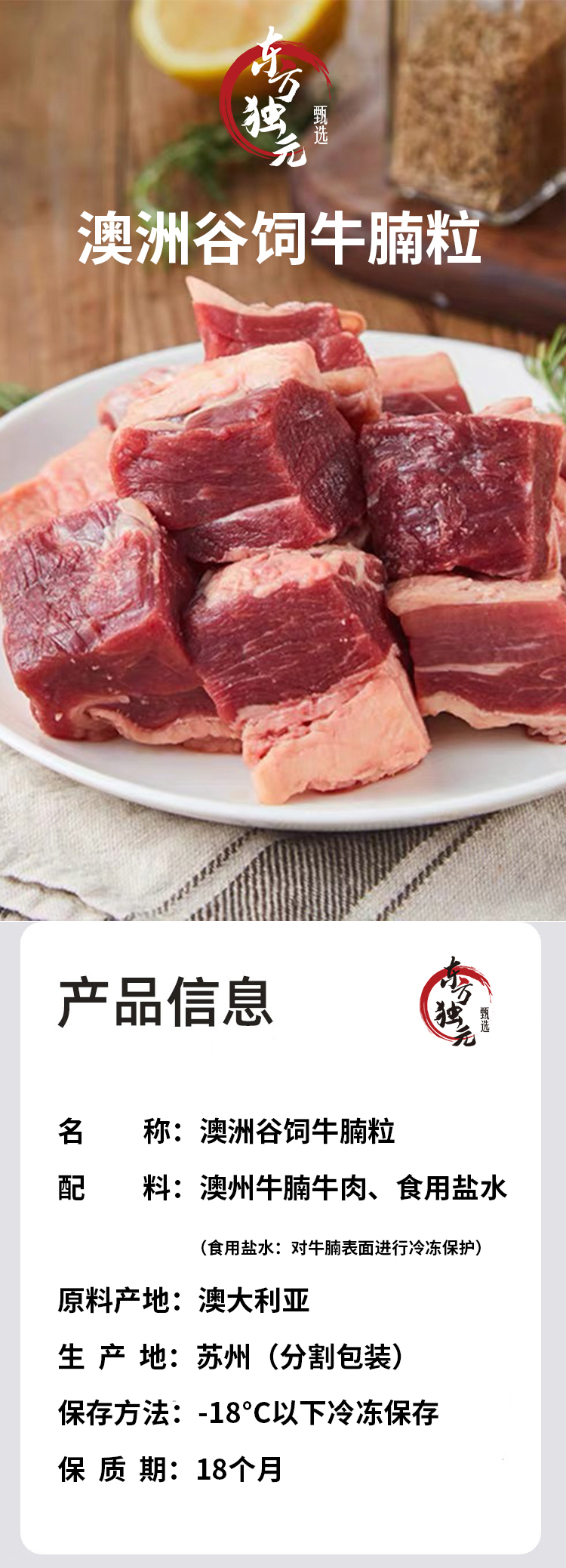 【独元】澳洲谷饲牛腩粒300g/袋*4袋