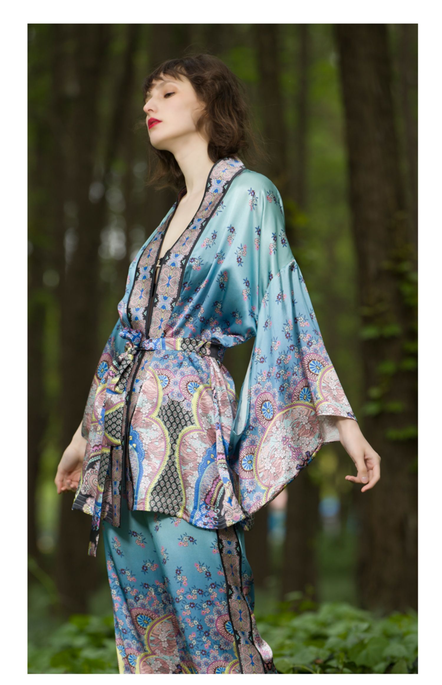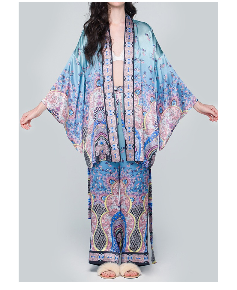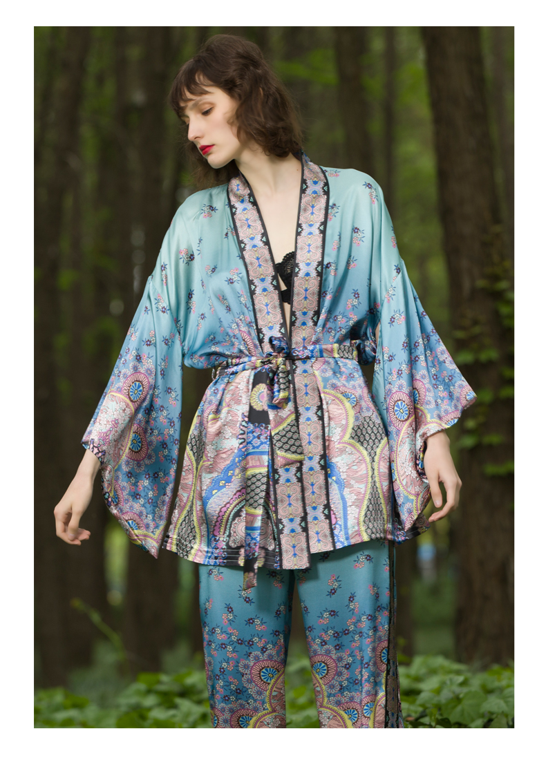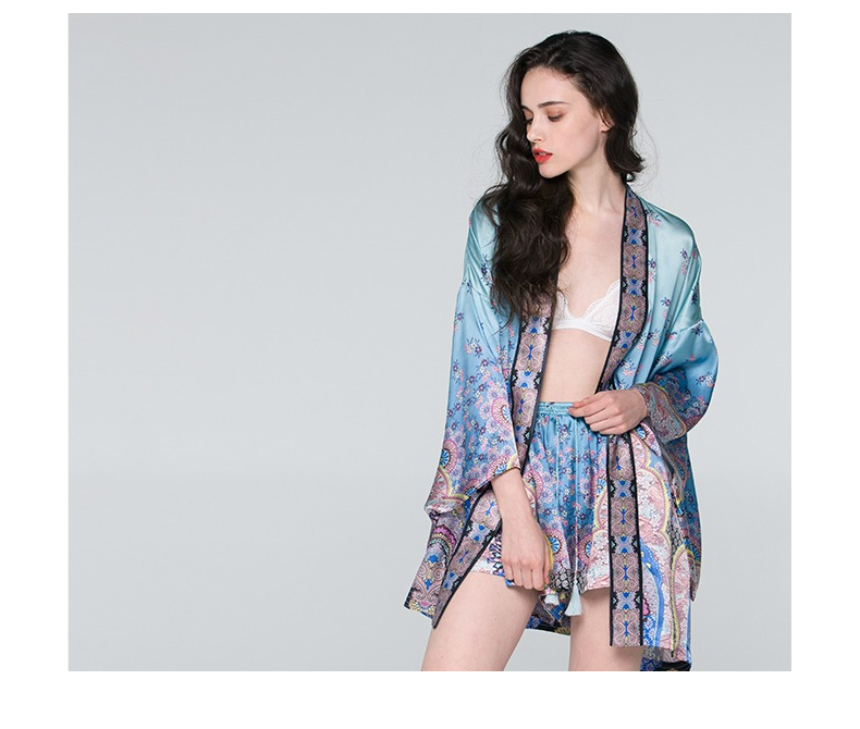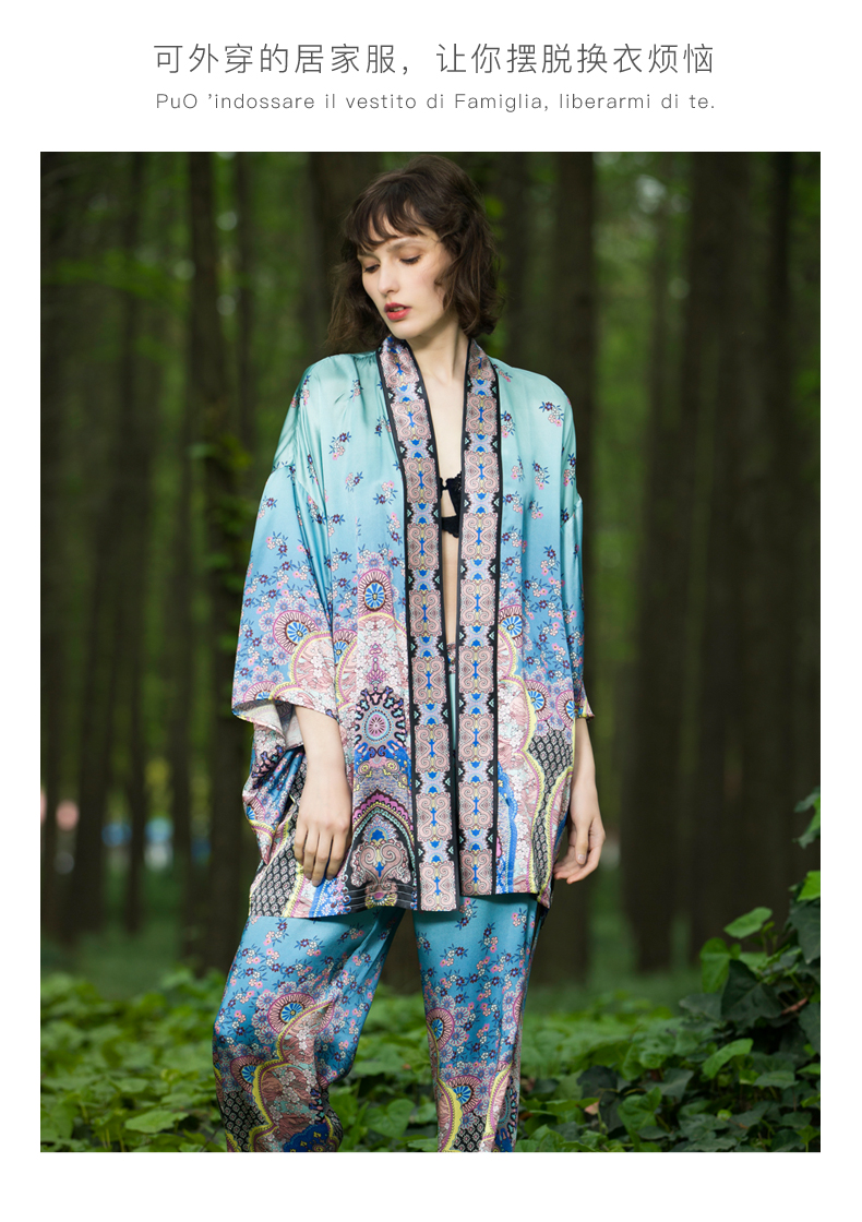 Solo seta22姆米重磅真丝睡袍仙女范清新晨衣家居服两件套丝绸晨袍秋冬