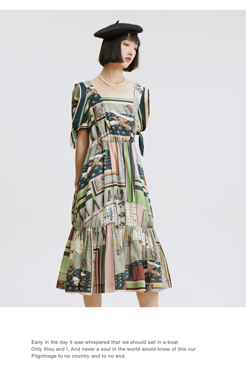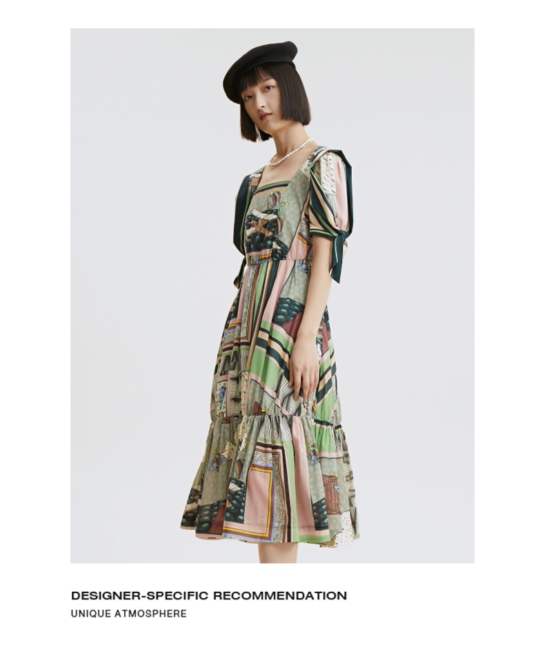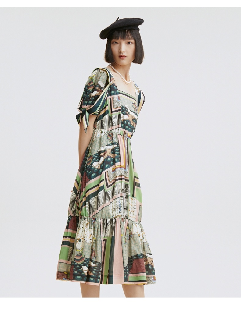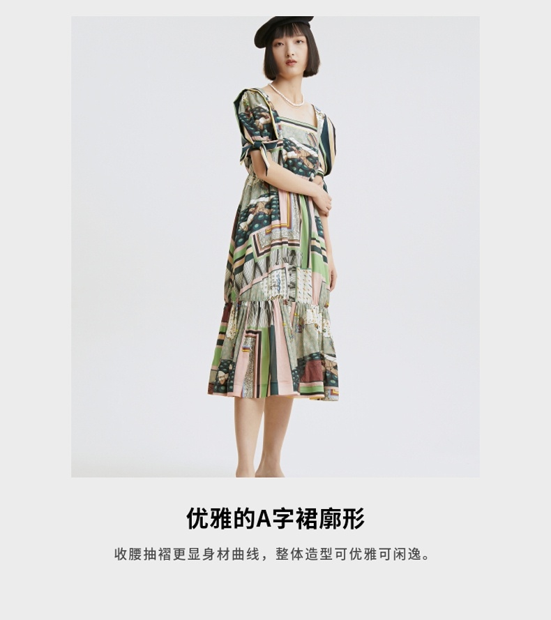 谜底连衣裙2021秋季新款甜美系纯棉印花泡泡袖收腰长裙213ML1838