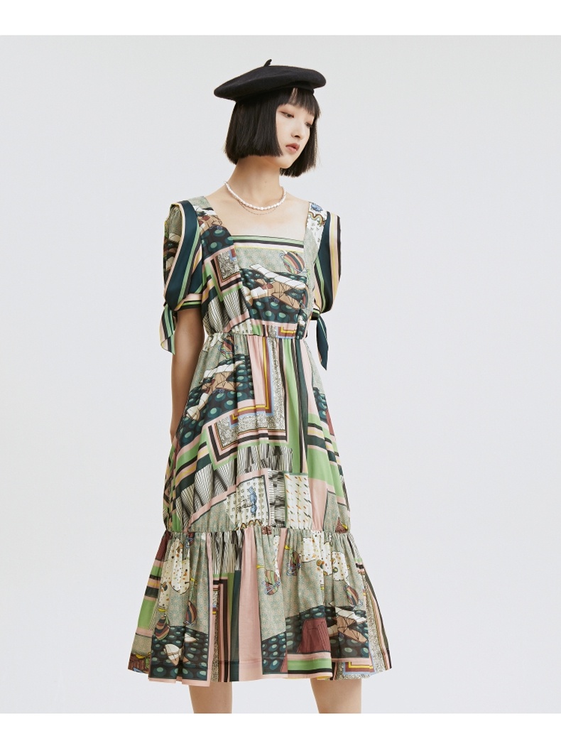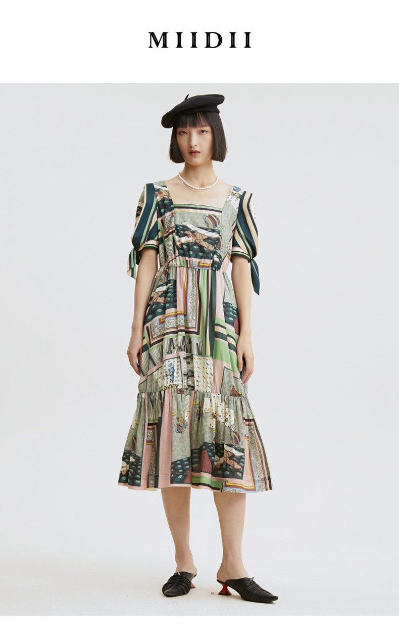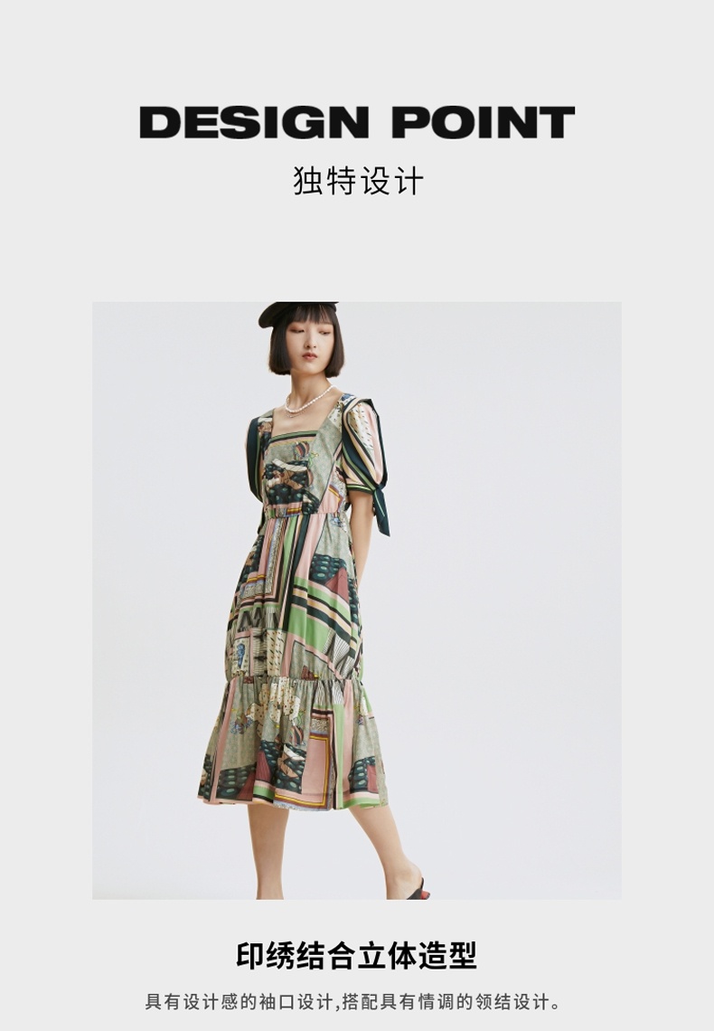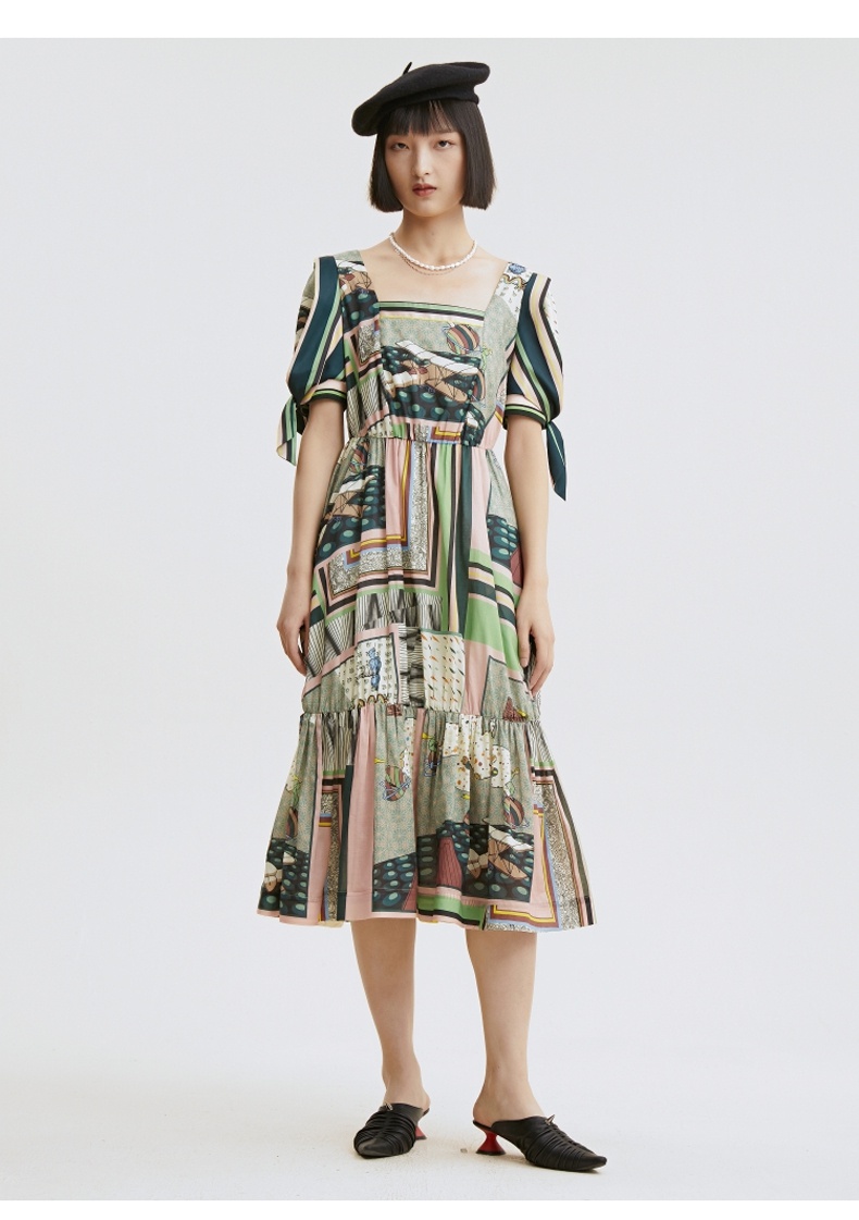 谜底连衣裙2021秋季新款甜美系纯棉印花泡泡袖收腰长裙213ML1838