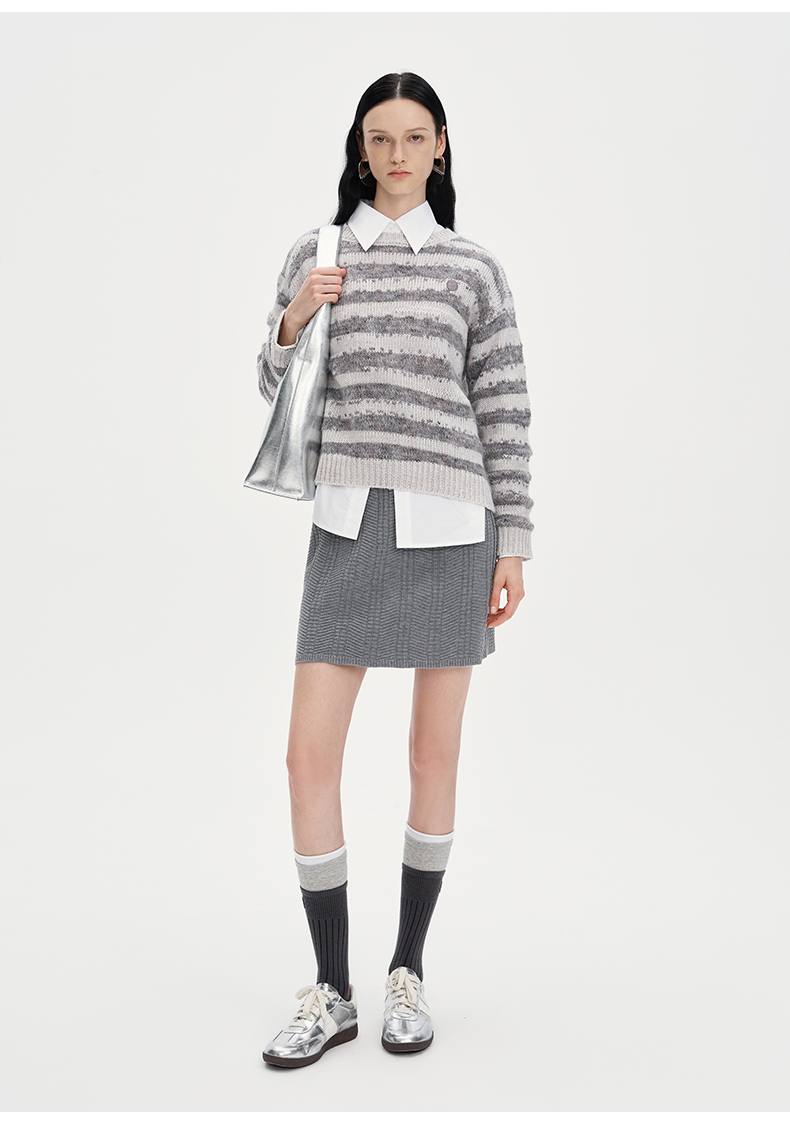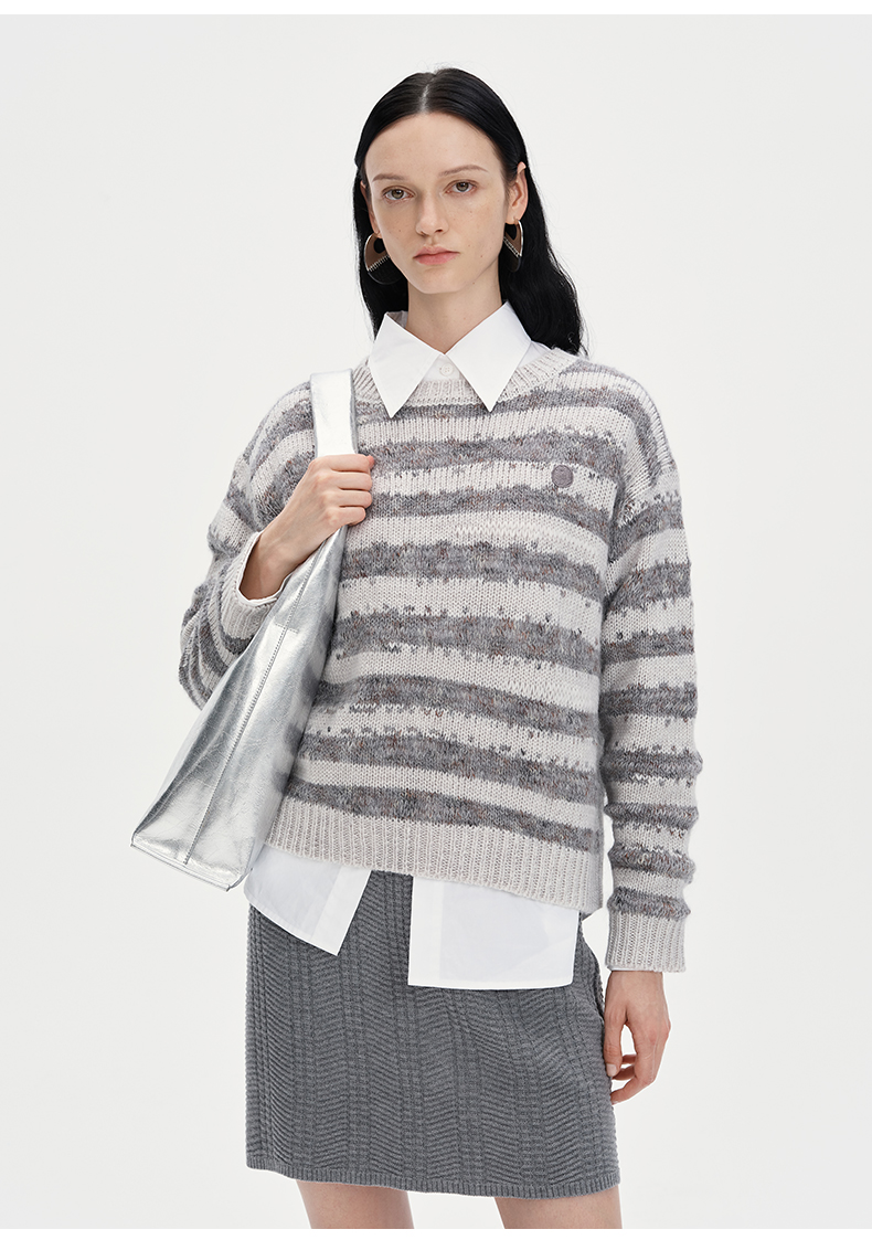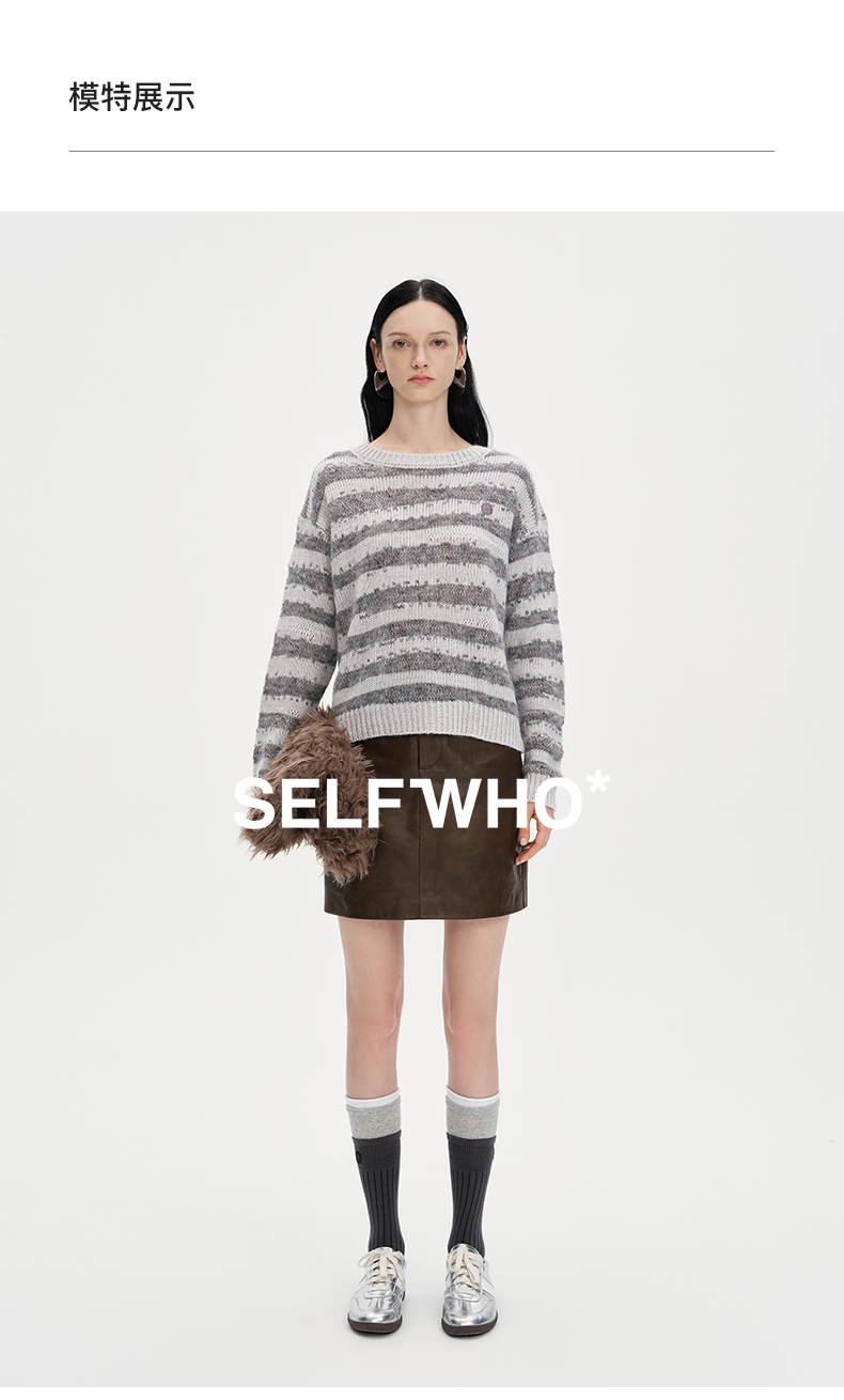 SELFWHO丝光马海毛羊毛混纺毛衣女2024秋季新款圆领套头针织上衣