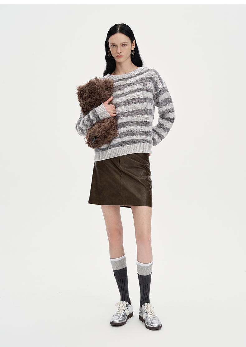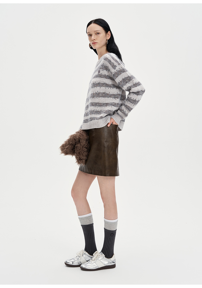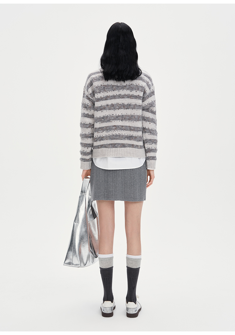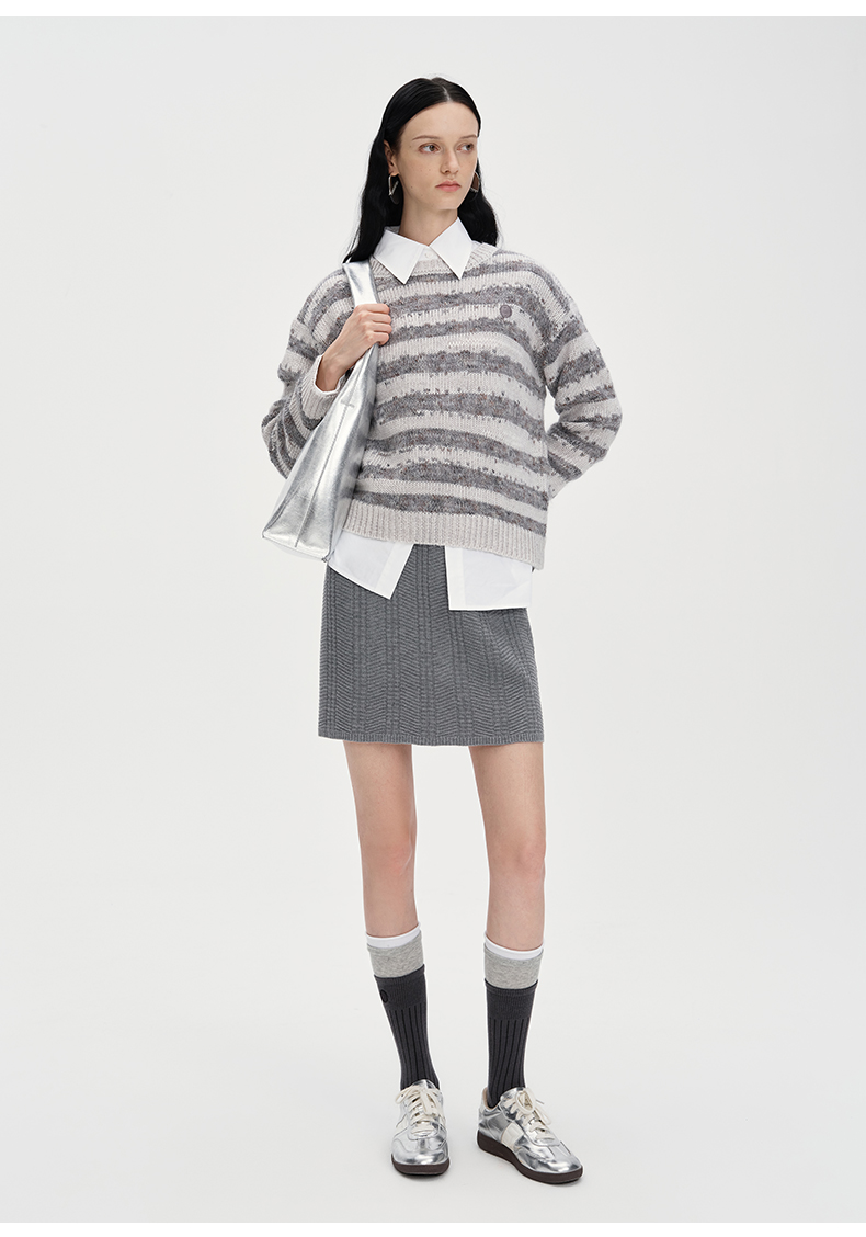 SELFWHO丝光马海毛羊毛混纺毛衣女2024秋季新款圆领套头针织上衣