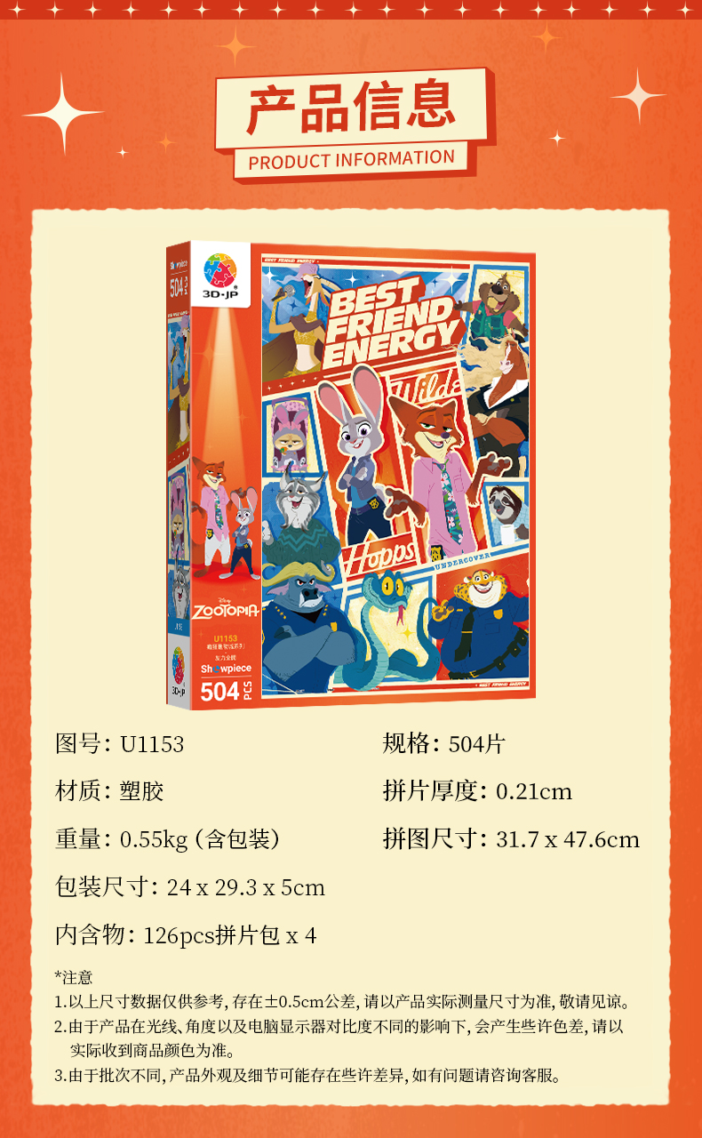 504片 平面塑料拼图 U1153 疯狂动物城系列-友力全开【Showpiece L】