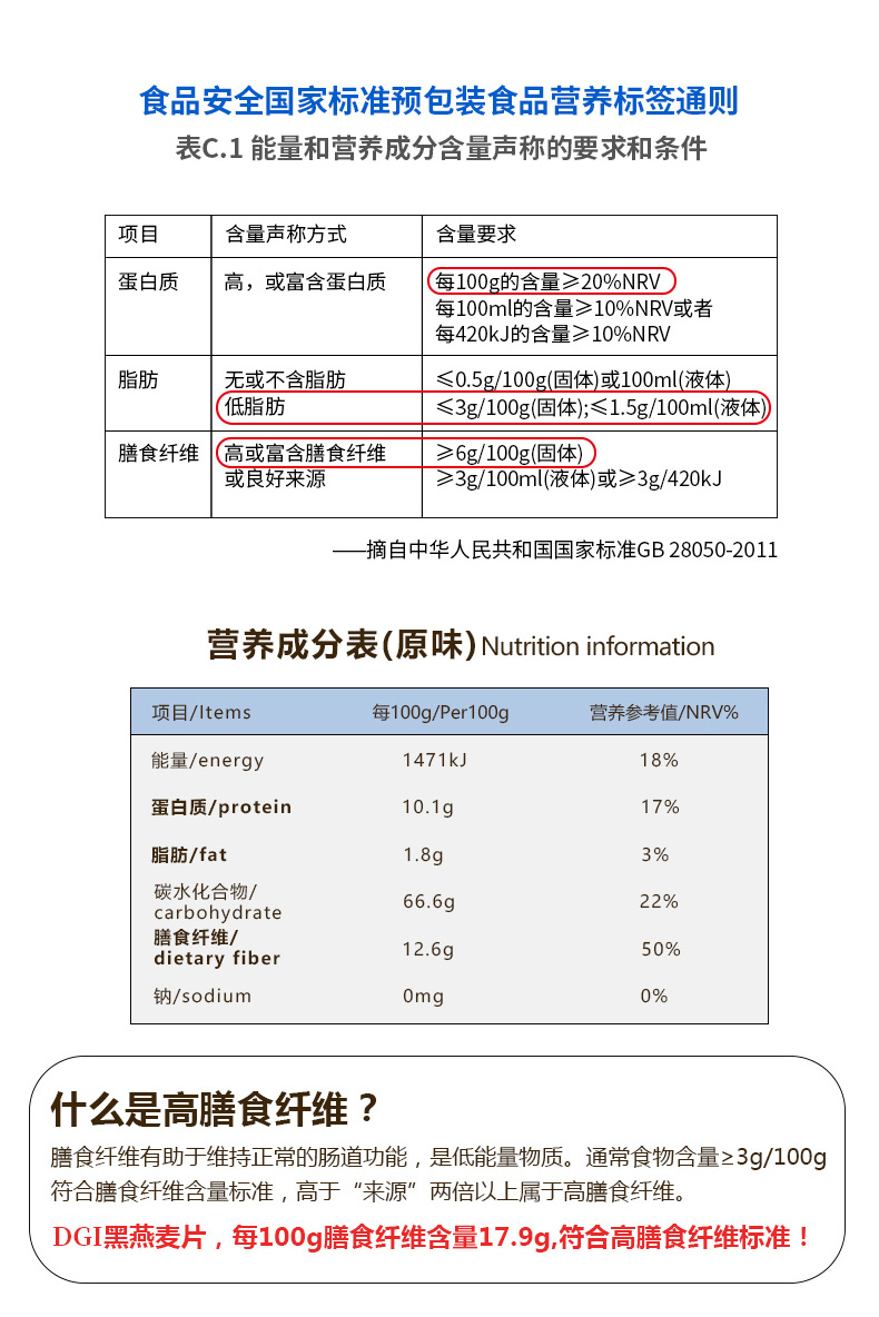 【DGI】DGI黑燕麦片营养早餐即食低脂饱腹代餐谷物冲饮速食品400g/袋