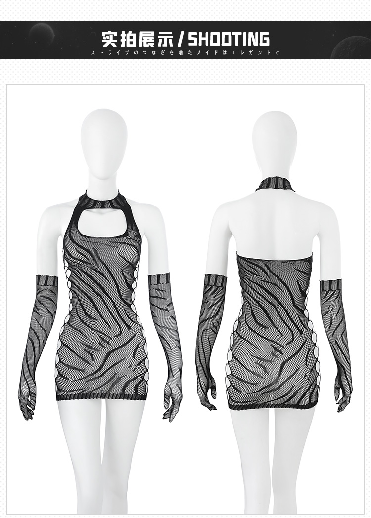 【情趣内衣】霏慕 热辣野性斑马纹连身网衣套装7401