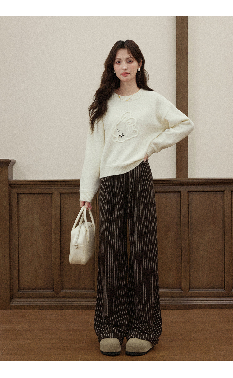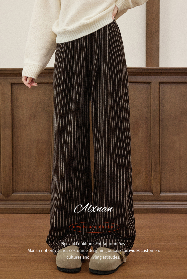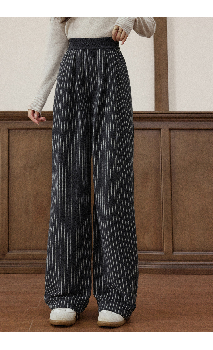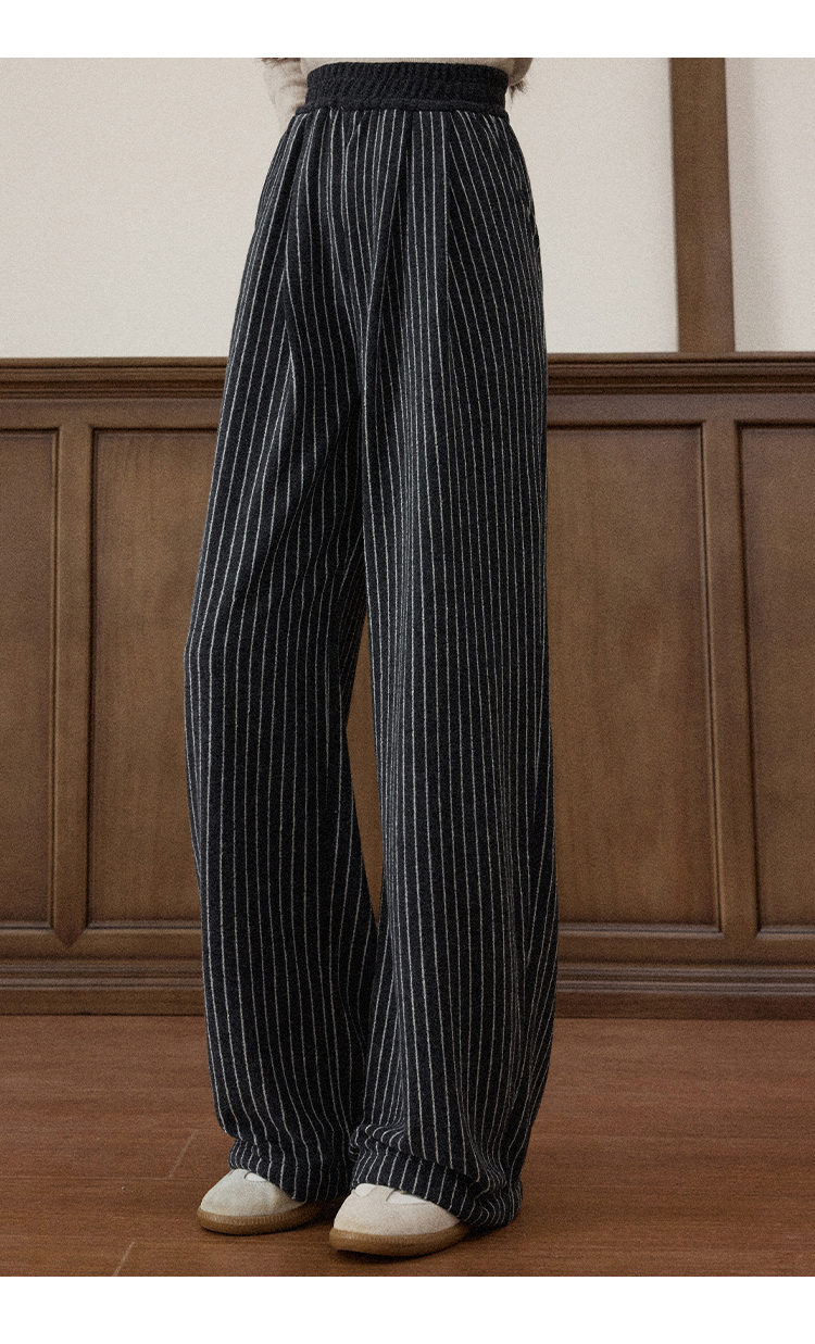 【65折秒杀】鹿向南「秋千日记」高腰垂坠感条纹休闲裤女秋冬宽松直筒阔腿裤LXNJ1260
