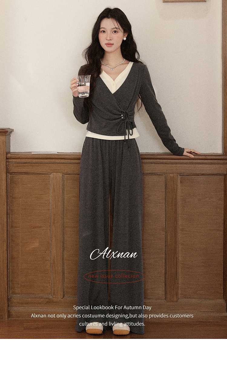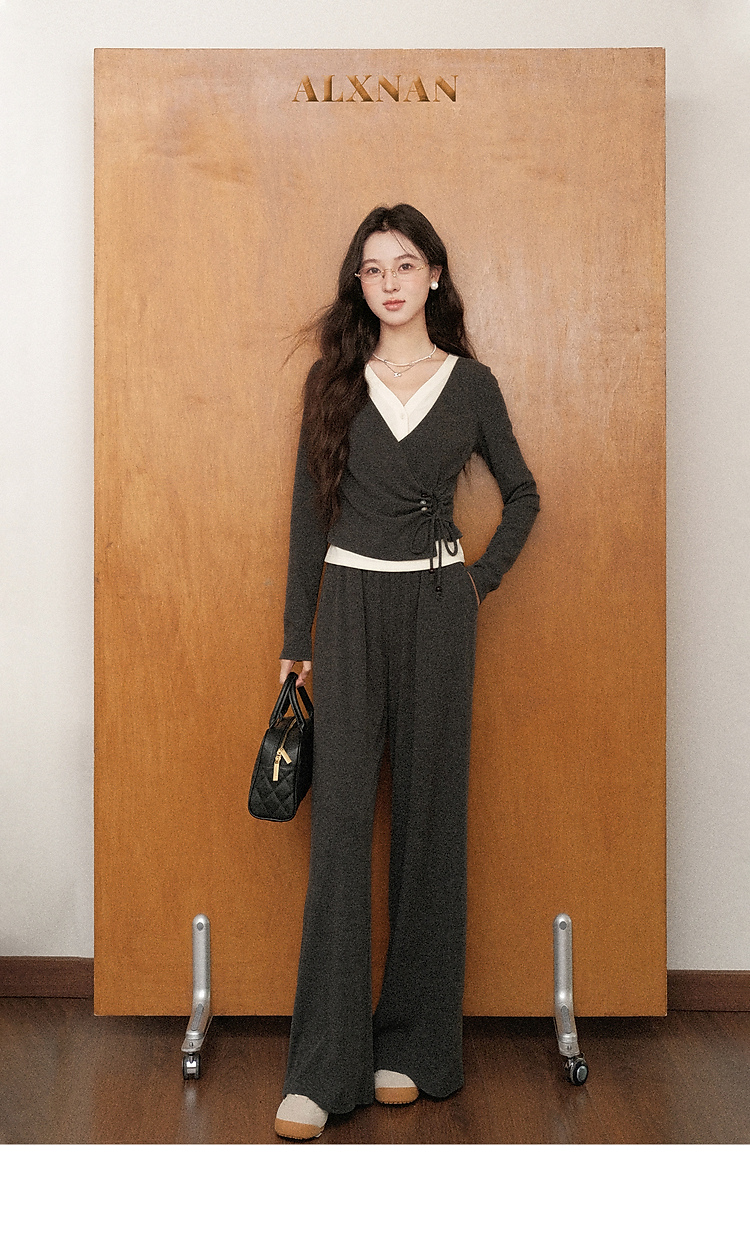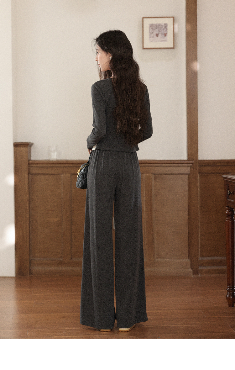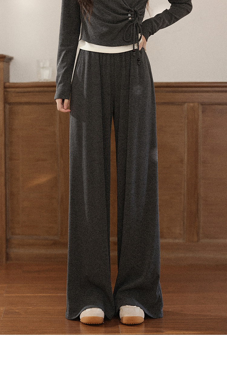鹿向南「油画风铃」灰色高腰休闲裤女早秋新款小众宽松慵懒阔腿裤
