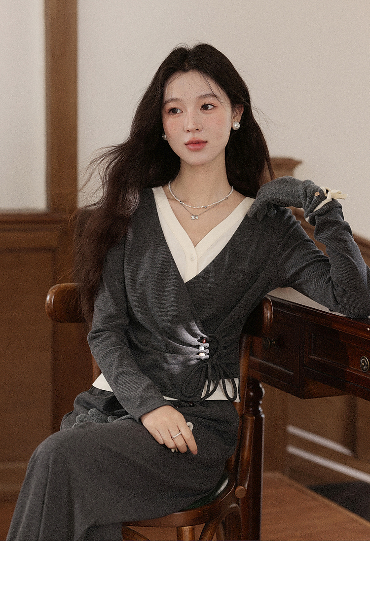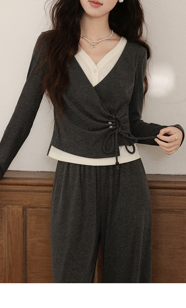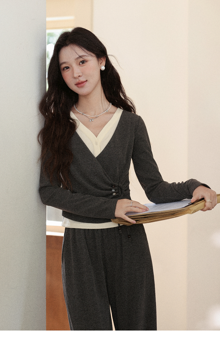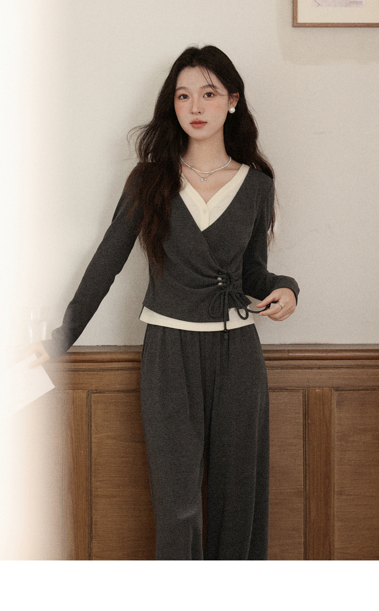 鹿向南「油画风铃」灰色高腰休闲裤女早秋新款小众宽松慵懒阔腿裤