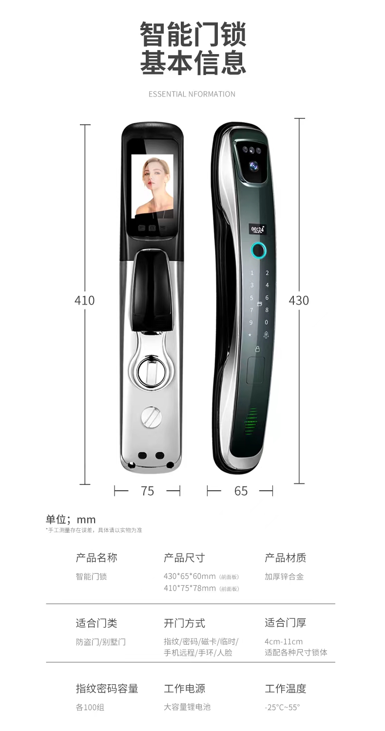 智慧匠心 新华二号纳米黑智能锁(猫眼款)