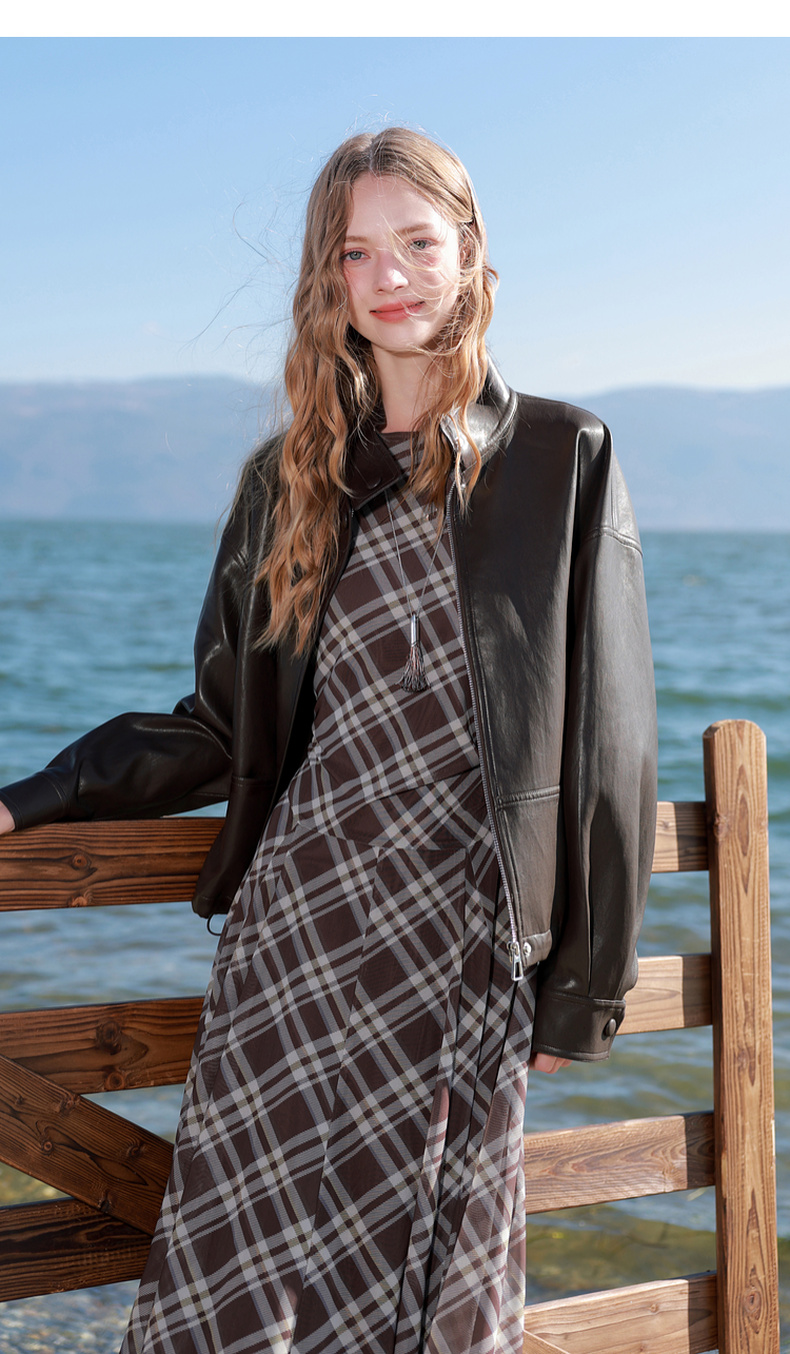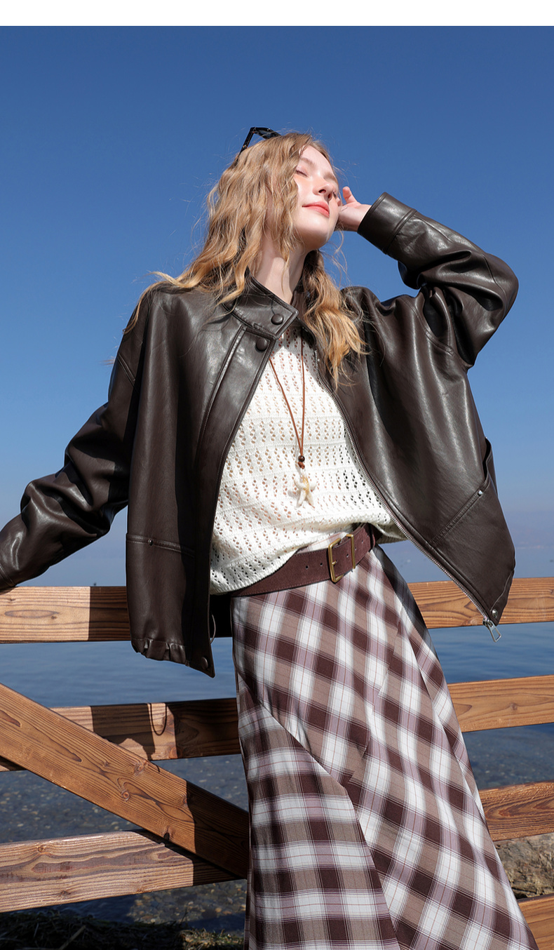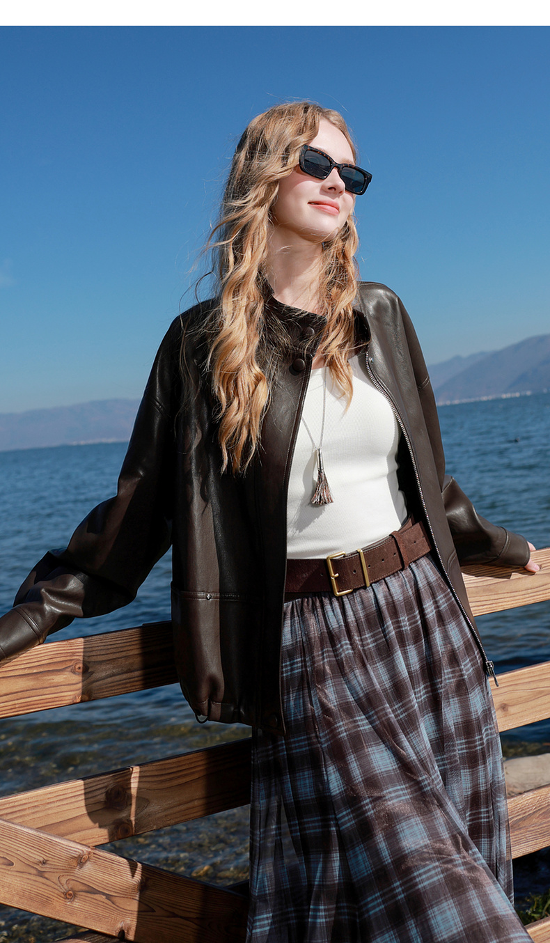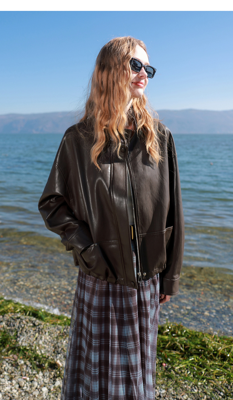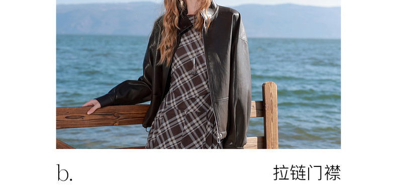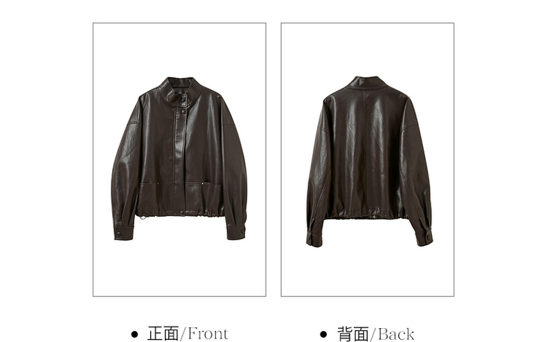 三彩2026春季新款立领长袖PU皮外套夹克拉链开衫复古宽松休闲M