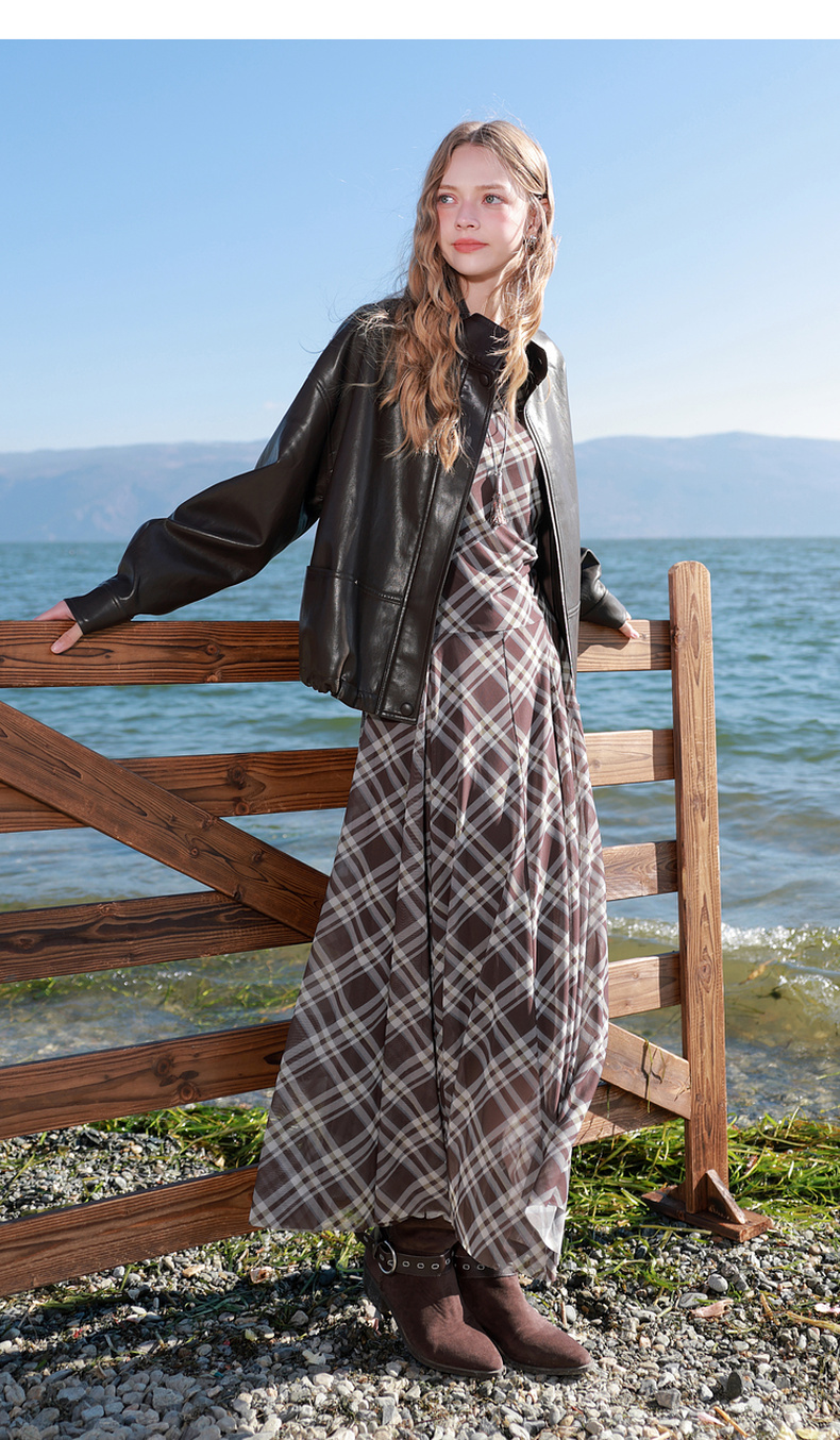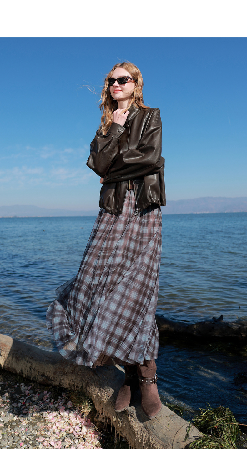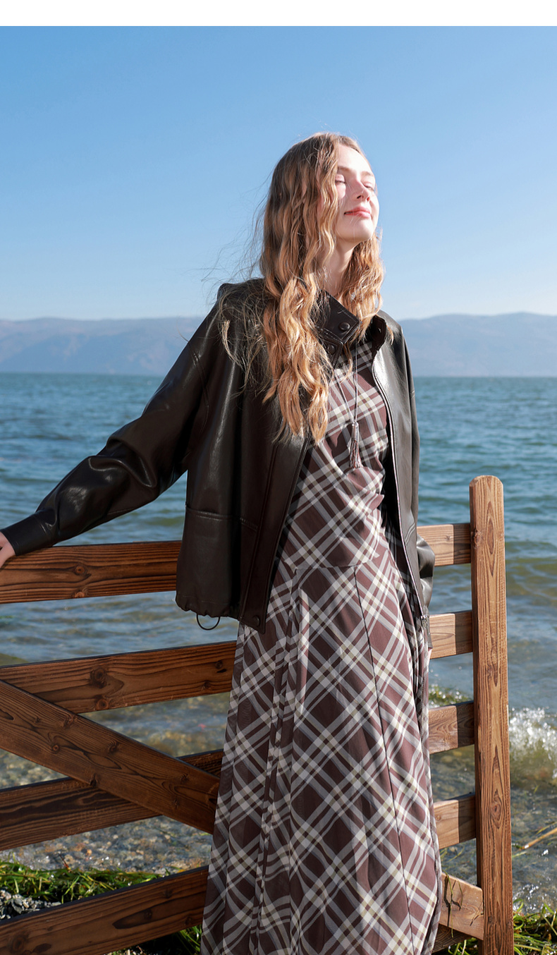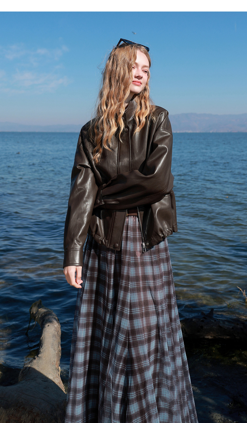 三彩2026春季新款立领长袖PU皮外套夹克拉链开衫复古宽松休闲M