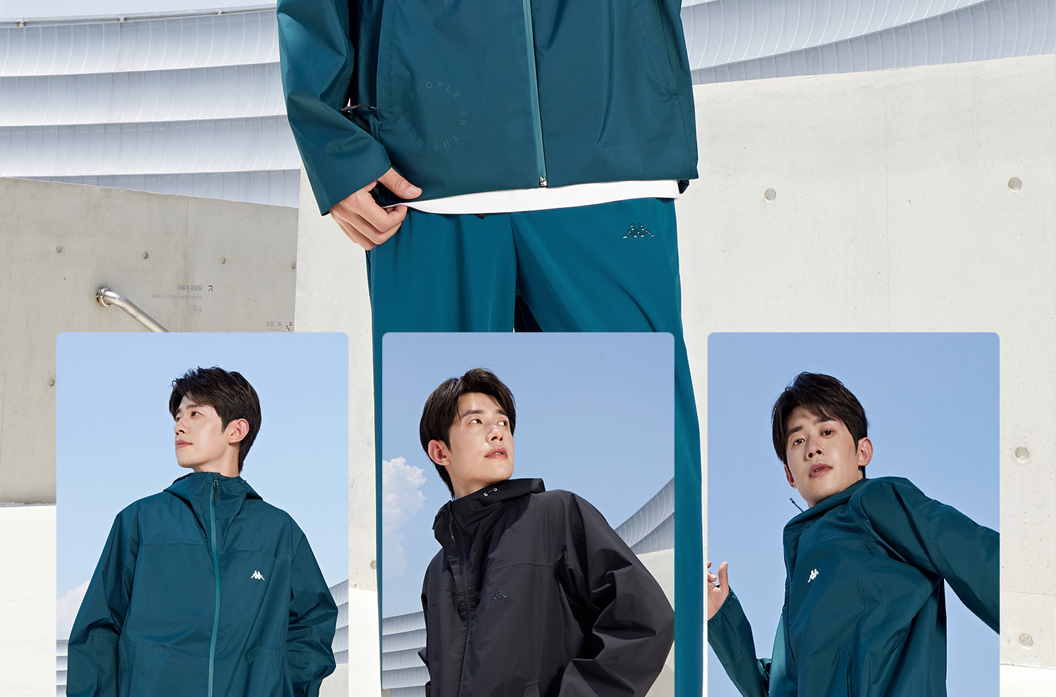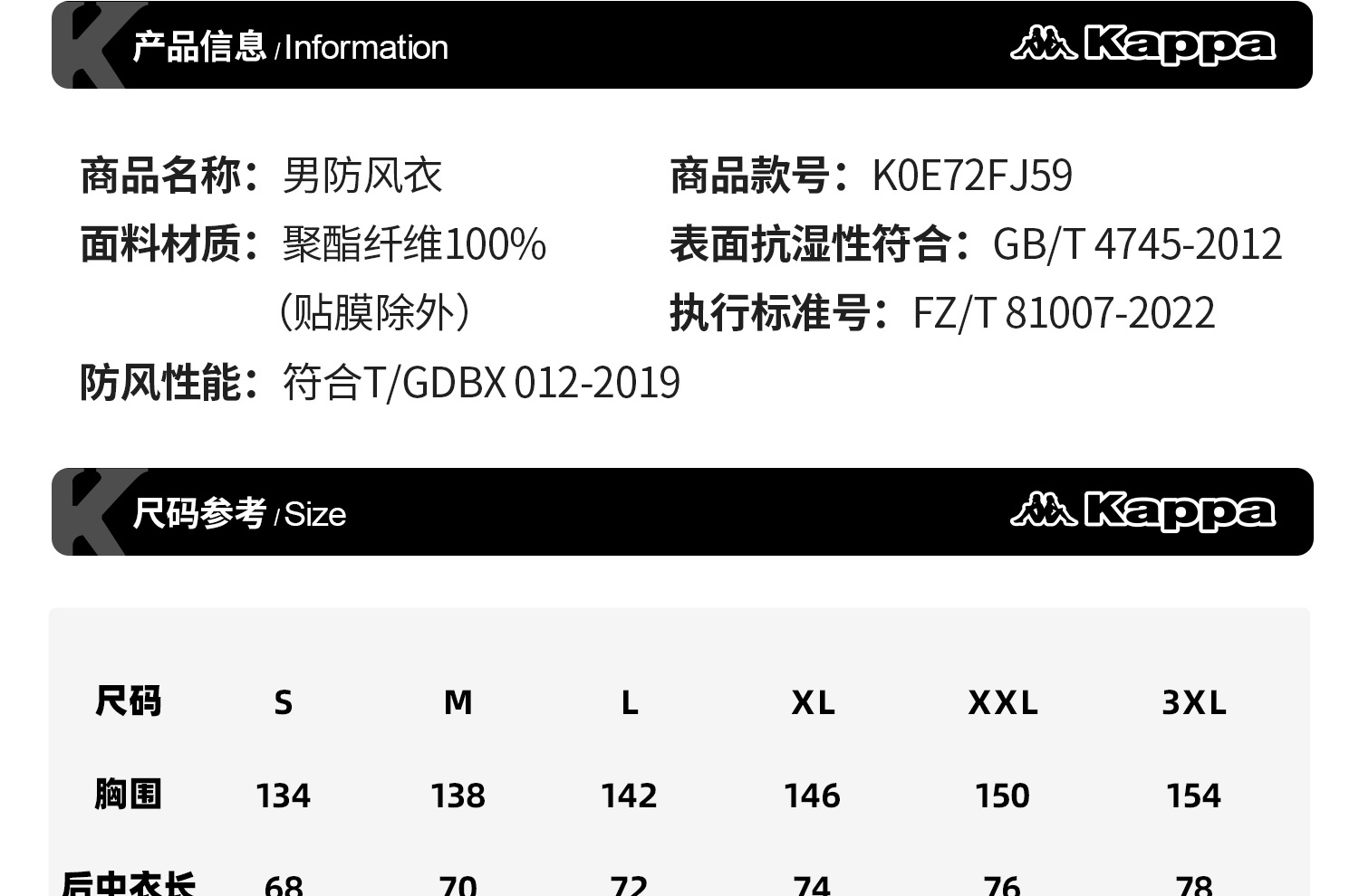 Kappa卡帕背靠背防泼水防风衣户外运动外套男连帽夹克休闲上衣潮K0E72FJ59