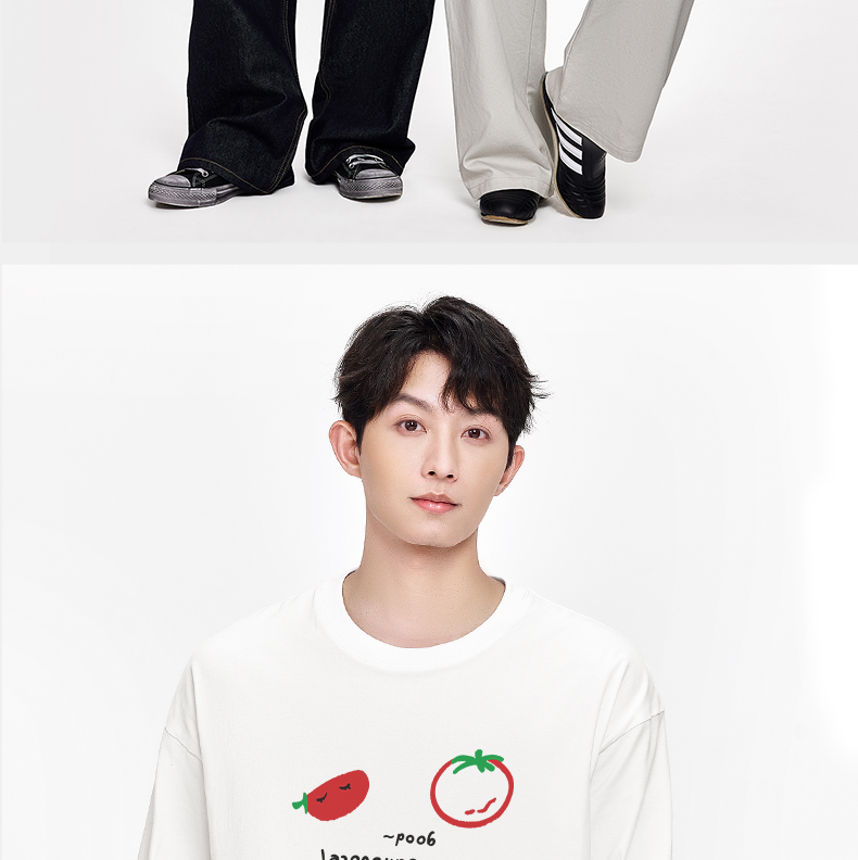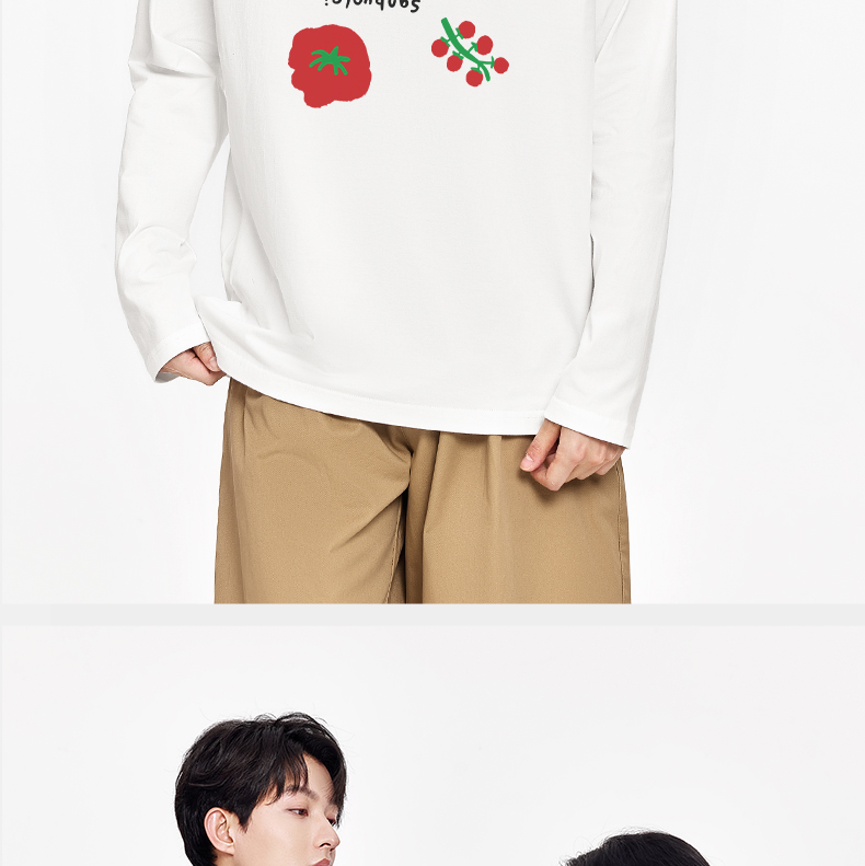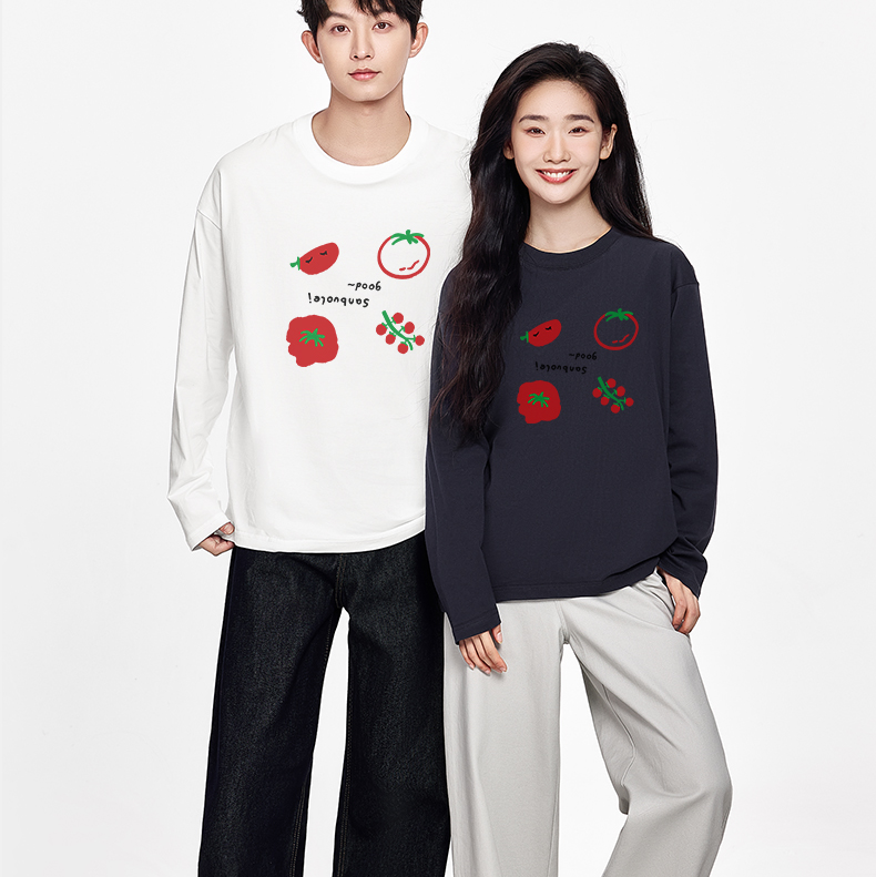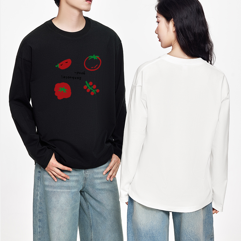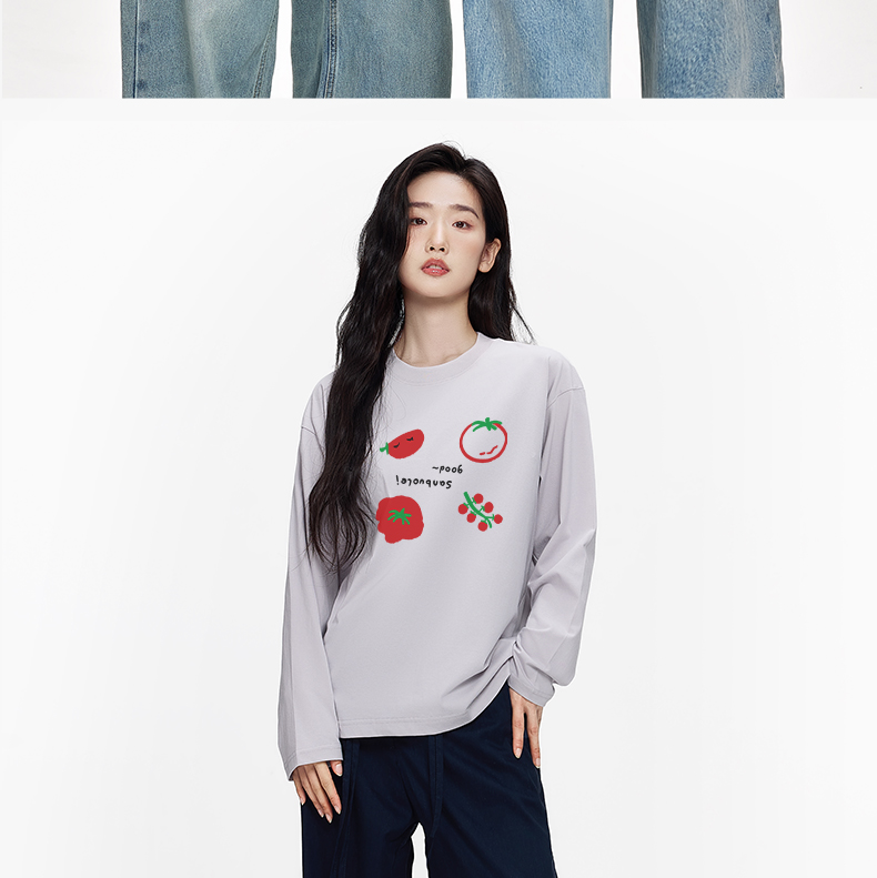 「棉的美学」纯棉涂鸦番茄印花长袖T恤女2025新款宽松韩版ing上衣
