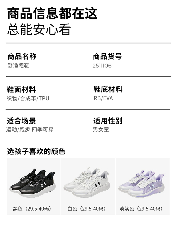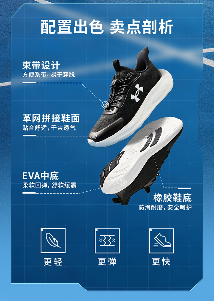 【品牌直发-福利特惠】安德玛童装25年新款春季男女童跑步鞋束带休闲网面透气儿童运动鞋2511106
