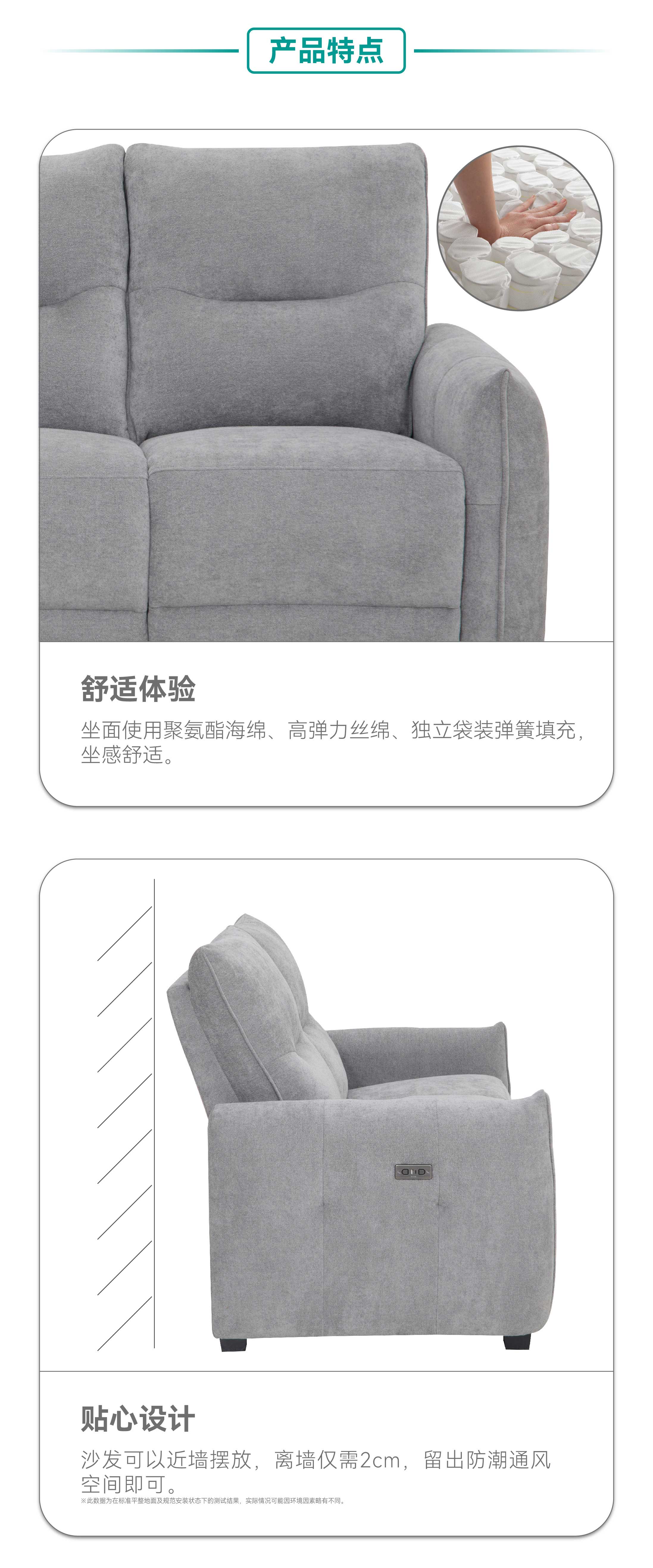 【家具】客厅简约独立弹簧电动布沙发 HS606