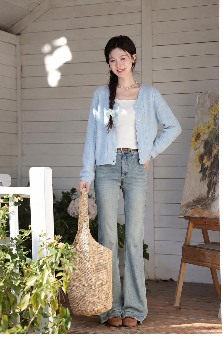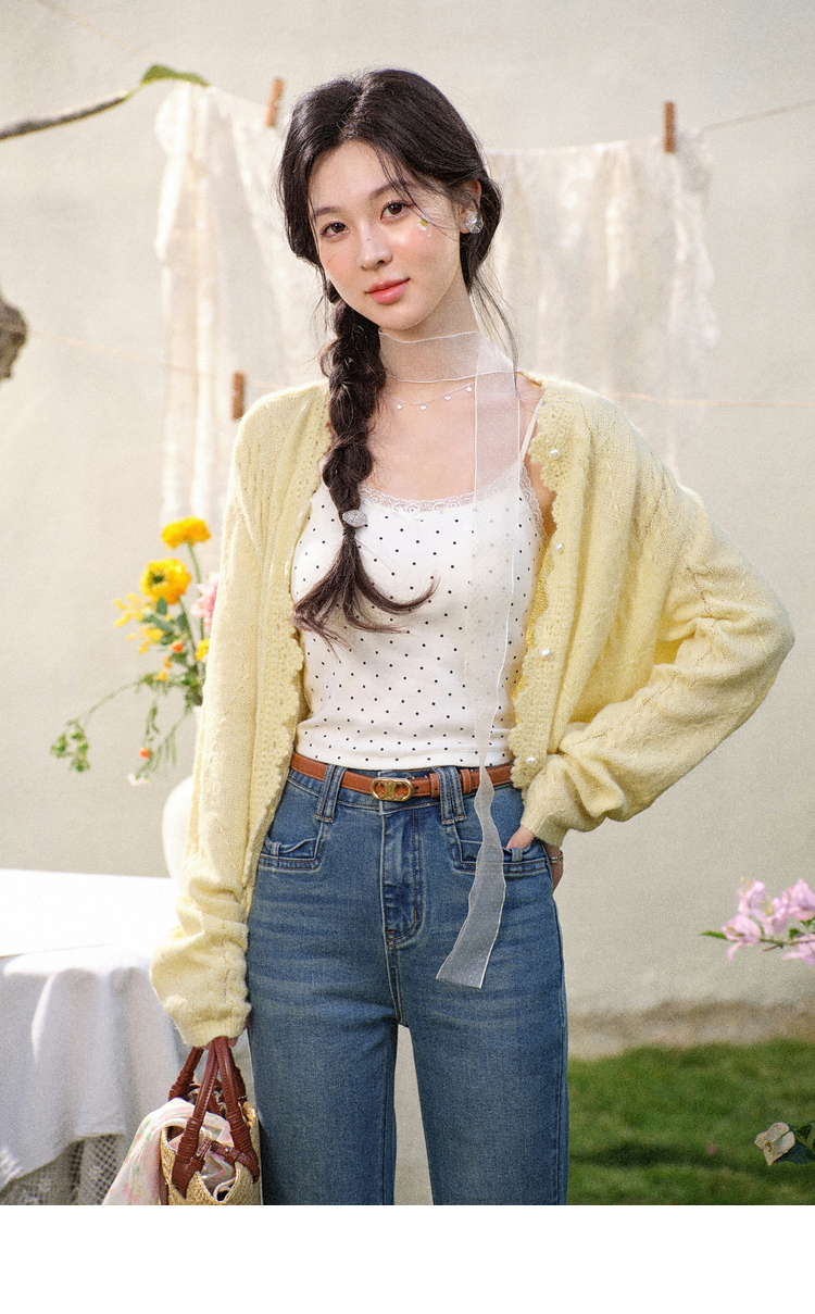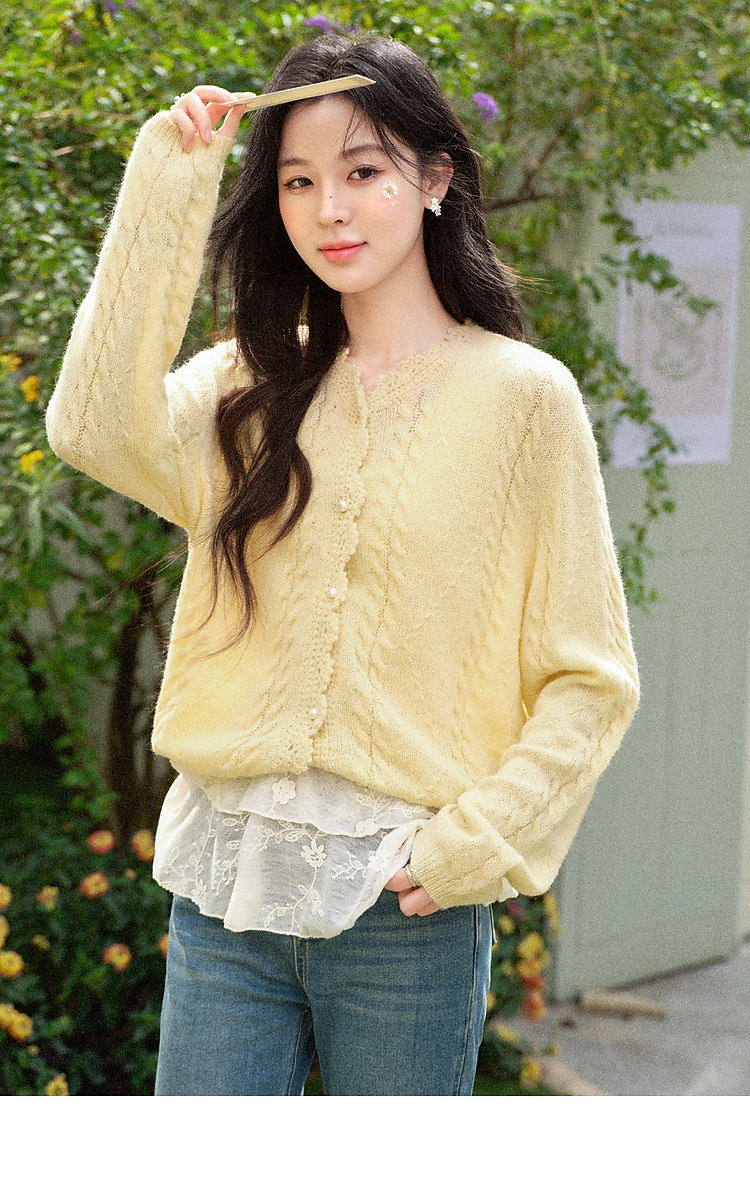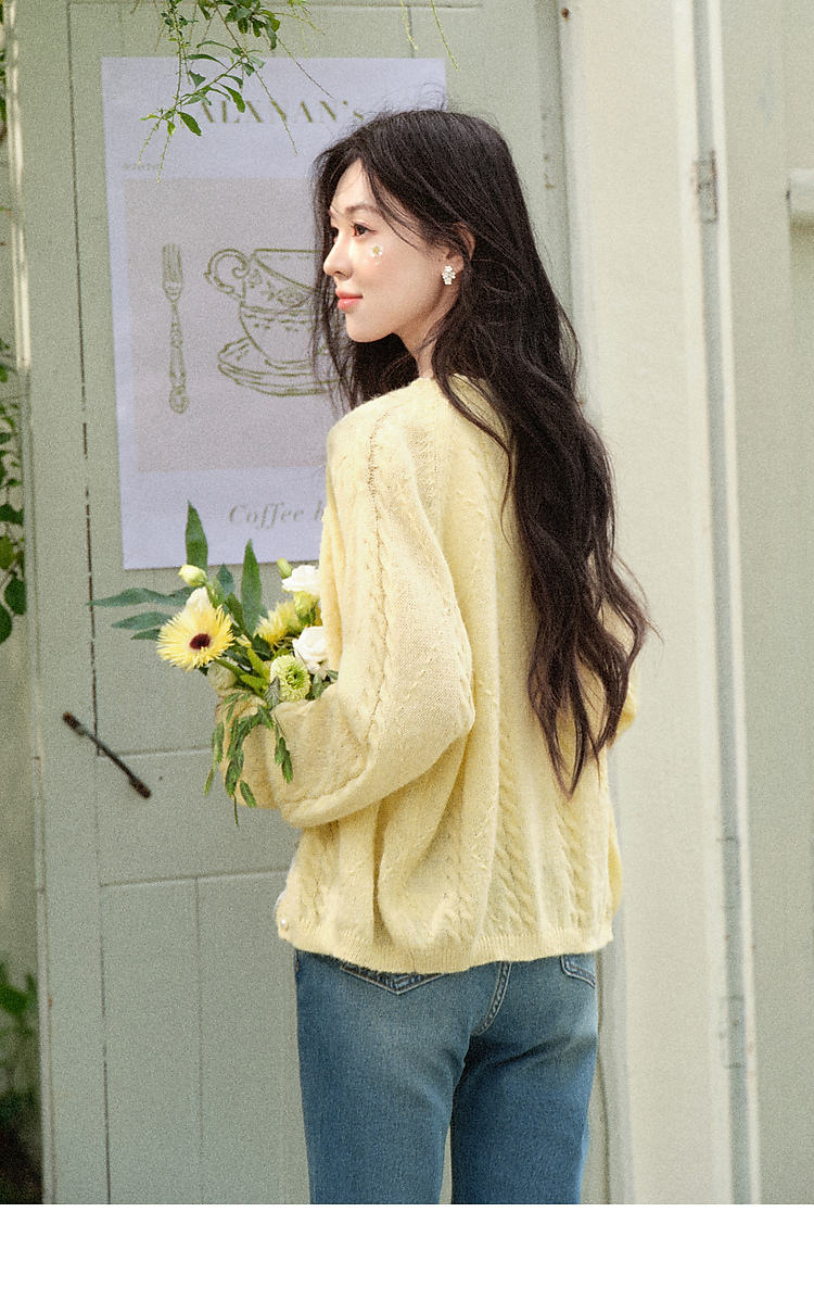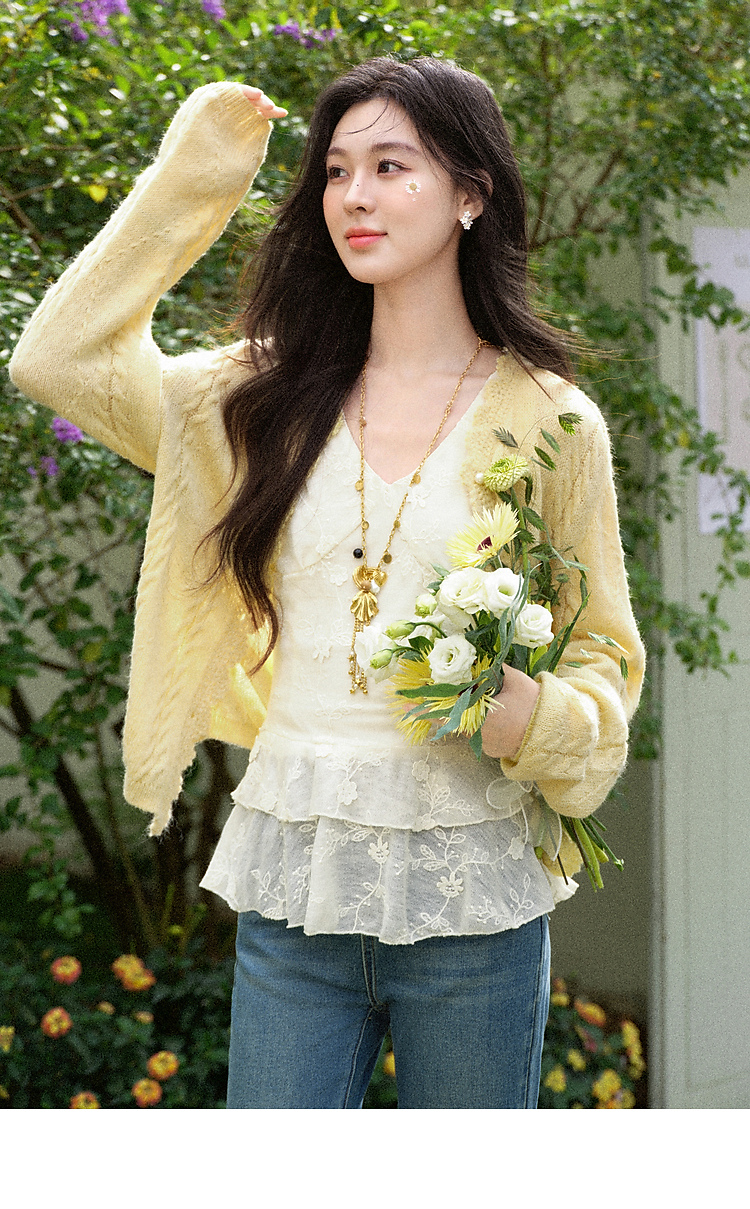 鹿向南「芒芒奶冻」高级感奶油黄针织衫女春新款洋气长袖开衫上衣