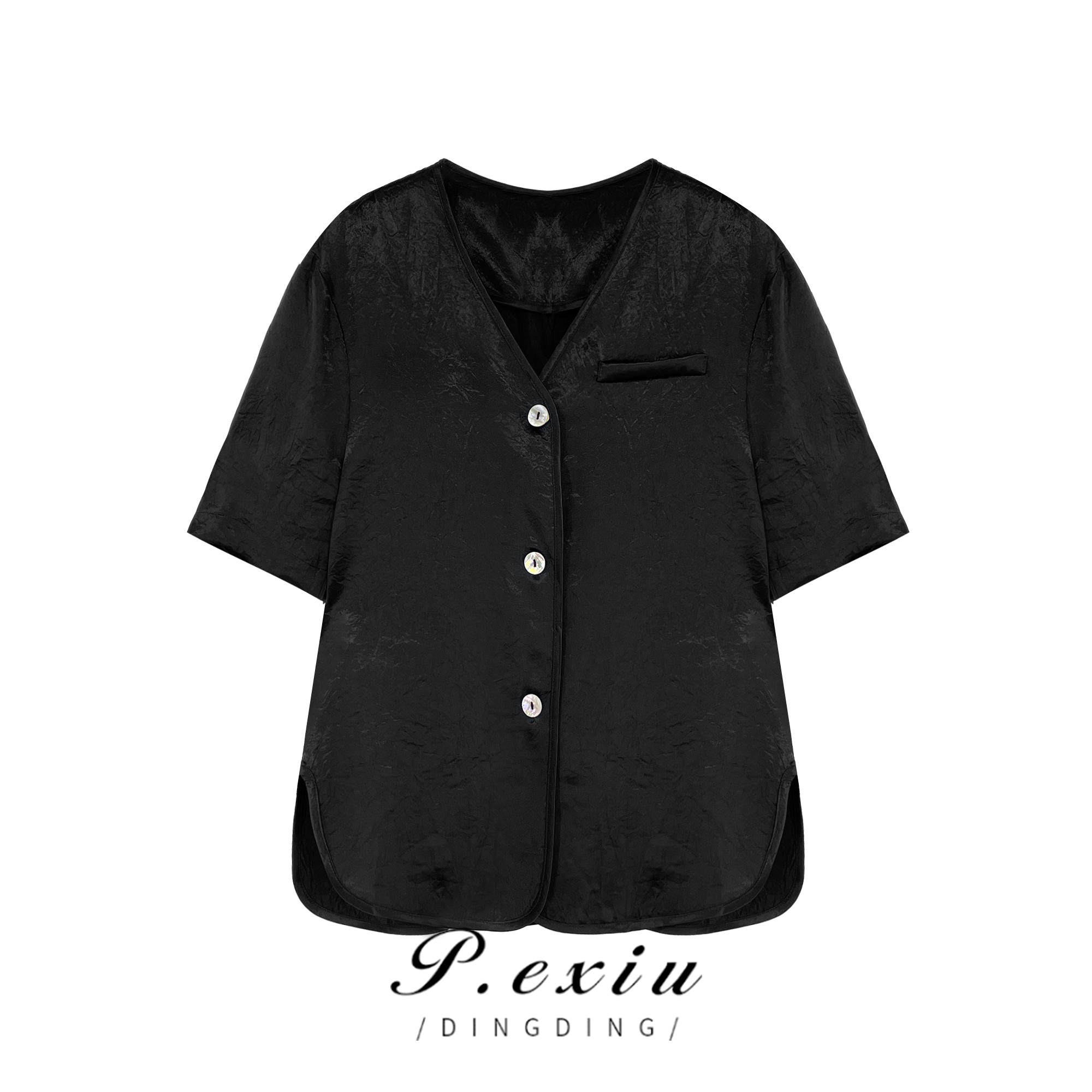 03-4潘依绣丁丁宠粉醋-酸-夏季国风纯色压褶气质休闲短袖衬衫 SH0812