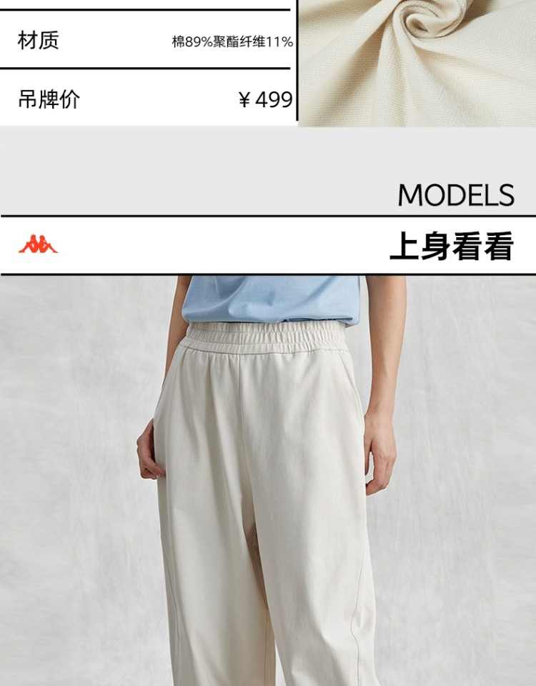 Kappa卡帕休闲裤2024新款女运动气球裤织唛长裤小脚卫裤K0E42AK80