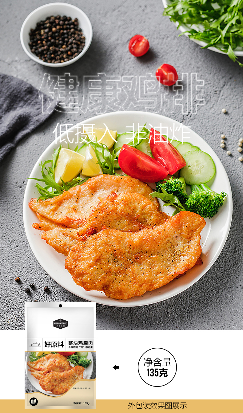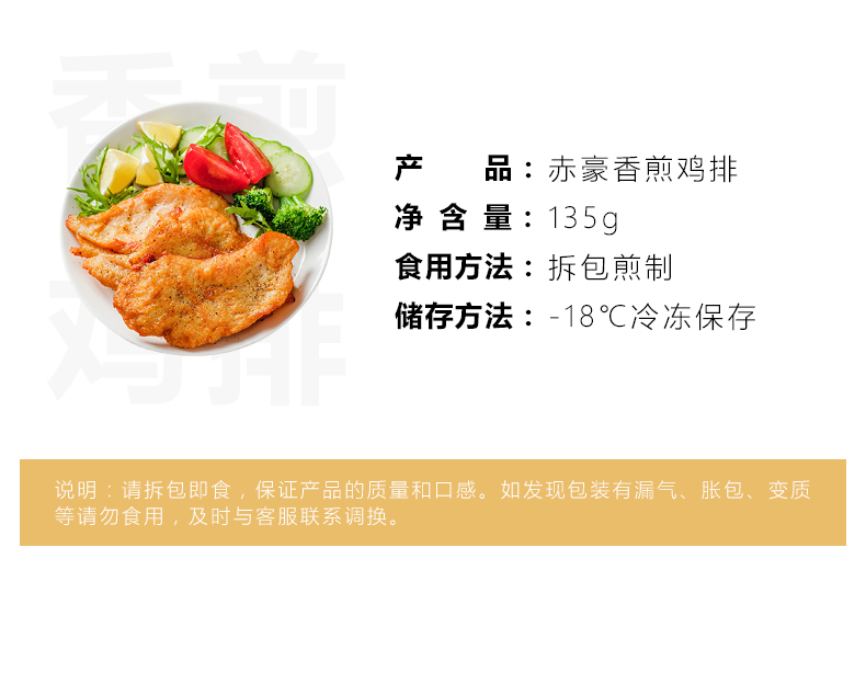 赤豪 香煎鸡排鸡胸肉大鸡扒冷冻半成品鸡排135g*10