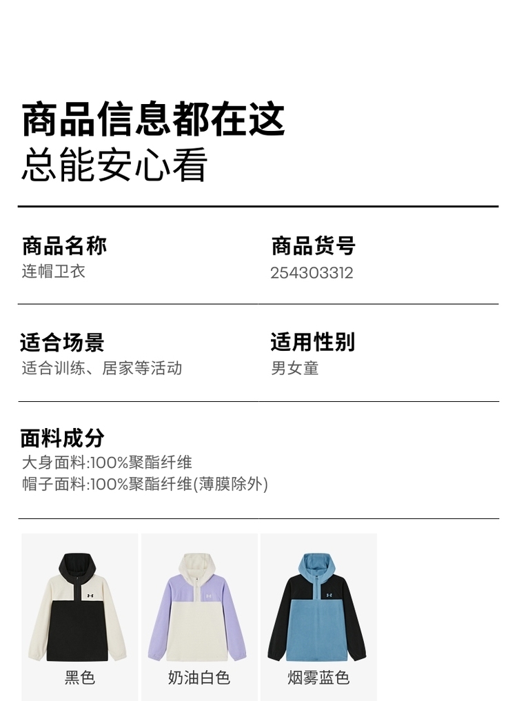 【12月-特惠福利】Under Armour安德玛童装连帽卫衣254303312